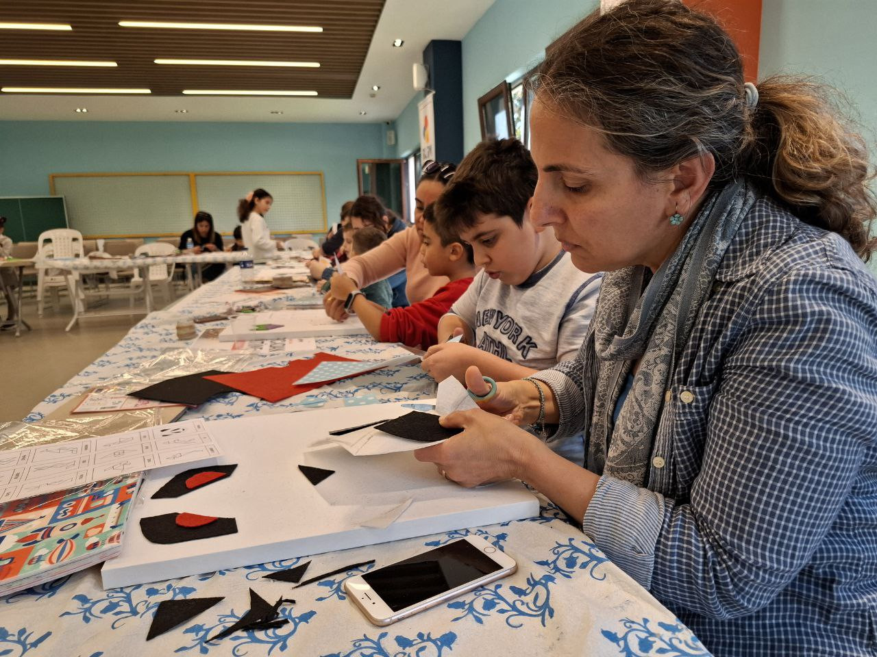 Her öğrenci ve veli bu doğrultuda kendi kübist hayvan tasarımını geliştirerek kişisel estetik yorumunu esere yansıttı. Kullanılan renkler, biçim parçaları, çizgi düzenleri ve geometrik katmanlar, her katılımcının özgün bakış açısını ortaya koyan bireysel çalışmalara dönüştü. Hazırlanan eserler etkinlik sonunda Tasarım Atölyesinin sergi alanında bir araya getirildi. Bu alan yalnızca çalışmaların görüldüğü bir bölüm değil, aynı zamanda katılımcıların birbirlerinin eserleri üzerinden fikir alışverişi yaptığı, farklı yorumları değerlendirdiği ve sanatın çoğulcu yönünü birlikte deneyimlediği bir öğrenme mekânı haline geldi.