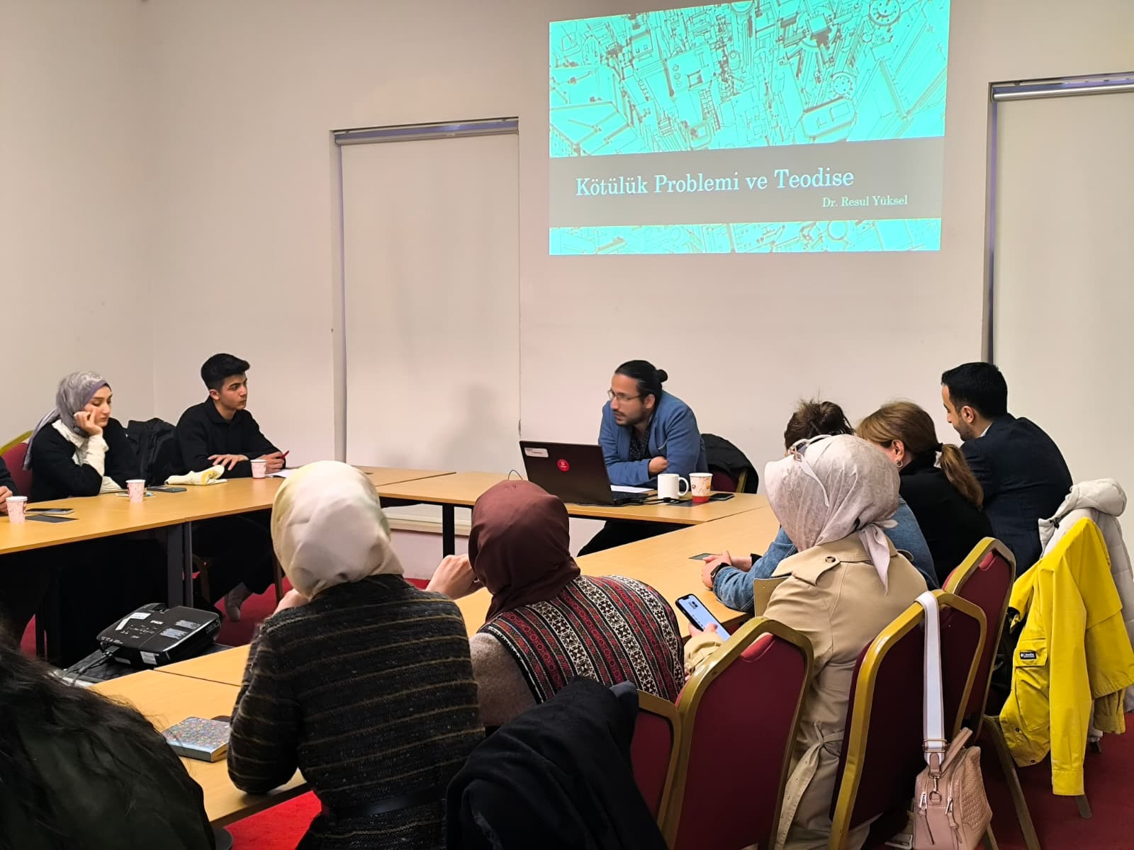 Fatih Belediyesi tarafından düzenlenen kültür ve düşünce programları çerçevesinde Medrese Davutpaşa’da gerçekleştirilen “Akıl ve İman: Din Felsefesi Okumaları” seminerinde, Dr. Resul Yüksel bu ayki oturumda din felsefesinin merkezî meselelerinden biri olan kötülük problemini ayrıntılı bir çerçevede ele aldı.