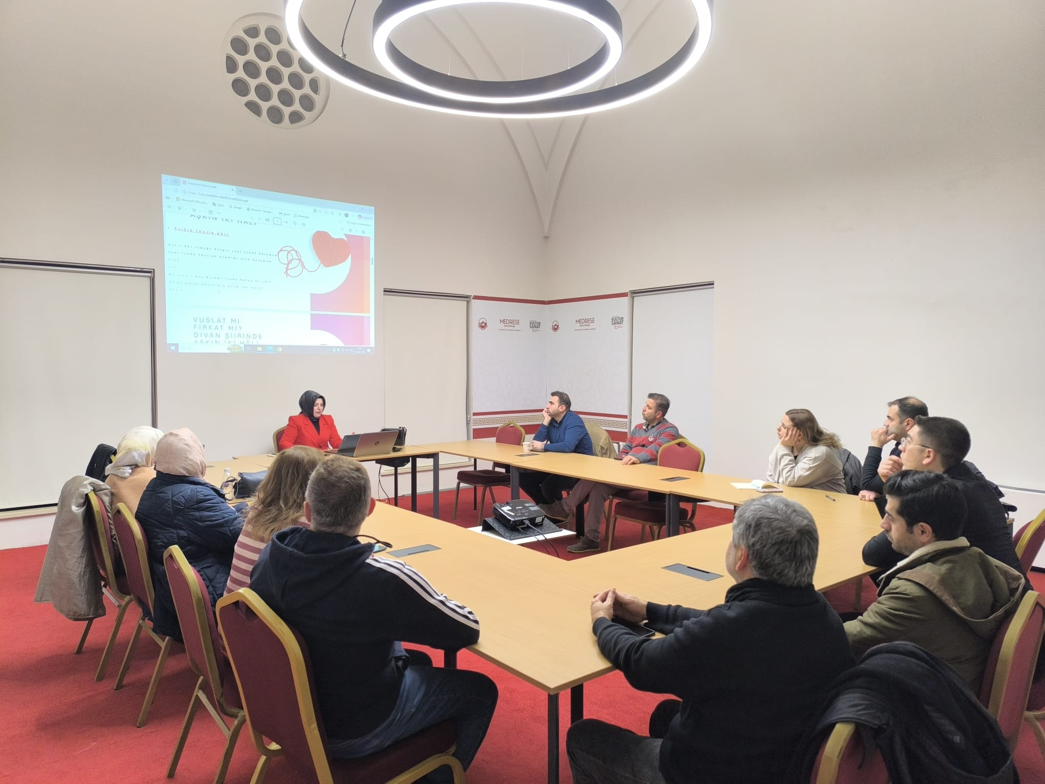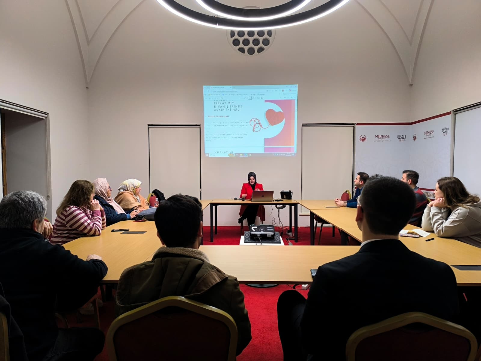 Medrese Davutpaşa’da düzenlenen ve Dr. Neslihan Dokumacı’nın yürüttüğü Divan Sohbetleri programında, “Vuslat mı, Firkat mi?” başlıklı derste divan şiirinde aşk kavramı, kavuşma ve ayrılık ekseninde ele alındı.