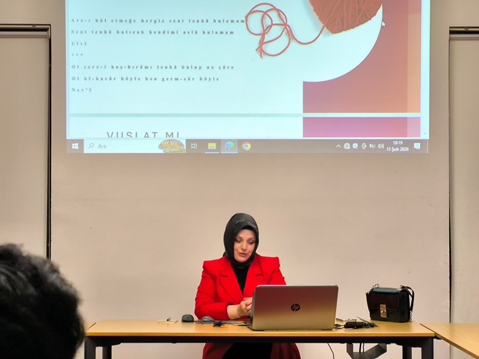 Program kapsamında gerçekleştirilen “Vuslat mı Firkat mi? Divan Şiirinde Aşkın İki Hâli” başlıklı derste, divan şiirinin merkezinde yer alan aşk kavramı, kavuşmayı ifade eden vuslat ve ayrılığı ifade eden firkat kavramları çerçevesinde ele alındı. Dr. Neslihan Dokumacı, divan şiirinde aşkın yalnızca kavuşma anına indirgenen bir duygu olmadığını; aksine ayrılık, sabır, özlem ve bekleyiş gibi süreçlerle anlam kazanan derin ve dönüştürücü bir tecrübe olarak ele alındığını ifade etti. Bu yönüyle aşkın, klasik şiirde bir sonuca ulaşma hâli değil; insanın iç dünyasını şekillendiren, sabrını ve anlam arayışını güçlendiren süreklilik taşıyan bir süreç olduğu vurgulandı.