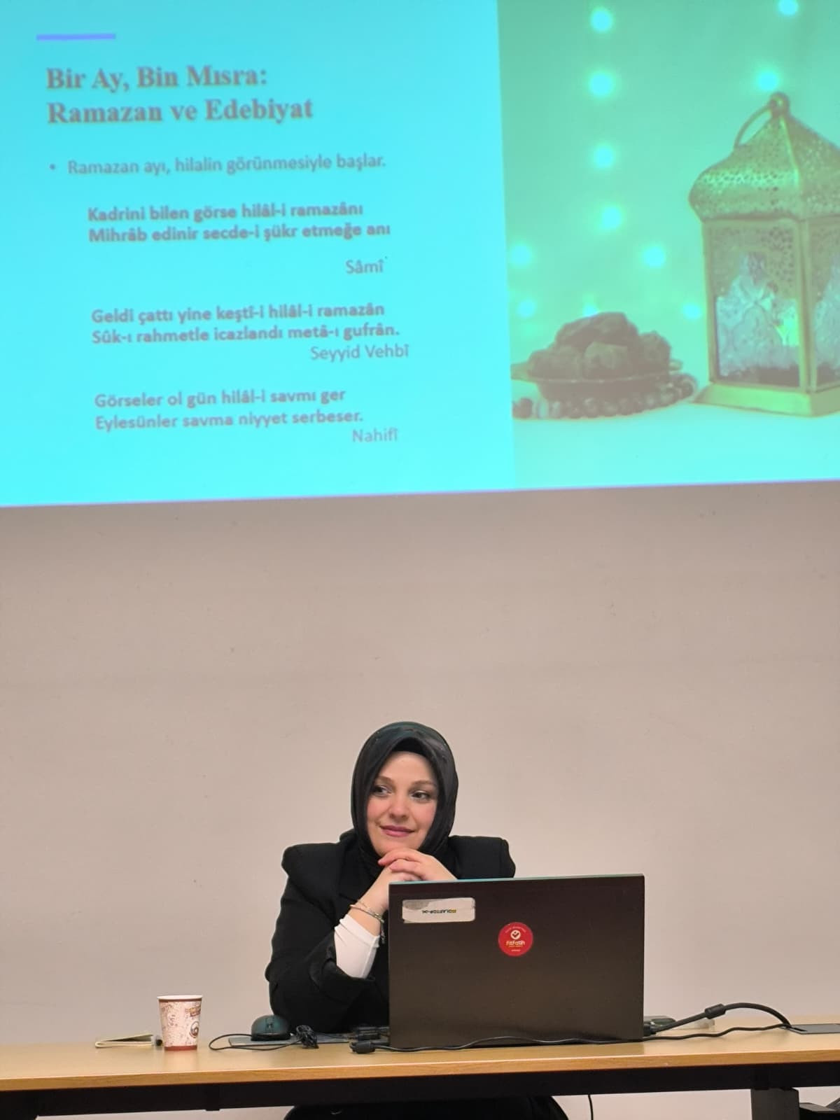 Söyleşi boyunca Divan edebiyatından seçilen beyitler eşliğinde Ramazan ayının edebiyat dünyasında nasıl karşılık bulduğu örneklerle ele alındı. Hilâlin doğuşuyla birlikte başlayan manevî iklimin sahur vakitlerinin sükûnetinde, iftar sofralarının şükründe ve gece ibadetlerinin huzurunda nasıl bir anlam kazandığı klasik şiir örnekleri üzerinden değerlendirildi. Divan şairlerinin mısralarında Ramazan’ın yalnızca bir ibadet zamanı değil; aynı zamanda insanın iç dünyasında gerçekleşen bir dönüşüm ve arınma süreci olarak ele alındığı vurgulandı.