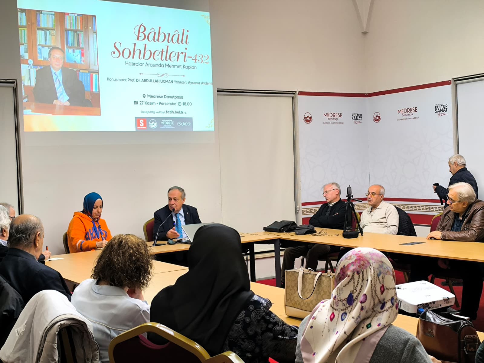 Prof. Dr. Abdullah Uçman, Bâbıâli Sohbetleri’nin 432’nci buluşmasında Medrese Davutpaşa’nın tarihî atmosferinde, hocası Prof. Dr. Mehmet Kaplan’ın hayatını ve edebiyatımıza bıraktığı mirası samimi bir dille anlattı.