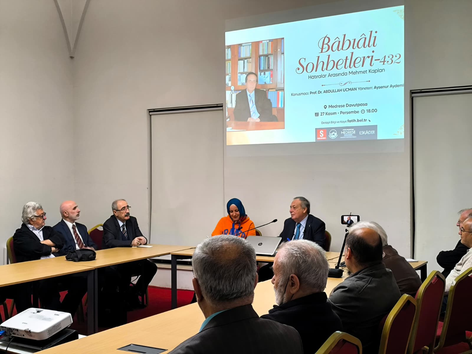 Fatih Belediyesi ile ESKADER’in ortaklaşa yürüttüğü Bâbıâli Sohbetleri, 27 Kasım 2025 Perşembe günü Medrese Davutpaşa’da gerçekleştirilen 432’nci programla edebiyatseverleri Türk düşünce hayatının değerli bir ismiyle yeniden buluşturdu. “Hatıralar Arasında Mehmet Kaplan” başlığını taşıyan etkinliğin konuşmacısı, Türk edebiyatı araştırmalarının öncü isimlerinden akademisyen, araştırmacı-yazar Prof. Dr. Abdullah Uçman oldu.