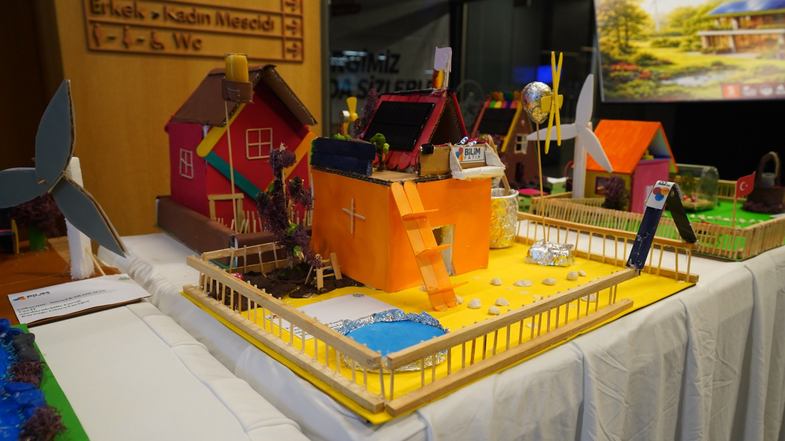 Fatih Belediyesi Merkez Kütüphanemizde açılan “Bilim Fatih Sürdürülebilir Yaşam için Tasarım Projeleri” sergisi, öğrencilerimizin velileriyle birlikte hazırladıkları yenilenebilir enerji temalı maket çalışmalarıyla dikkat çekti.
