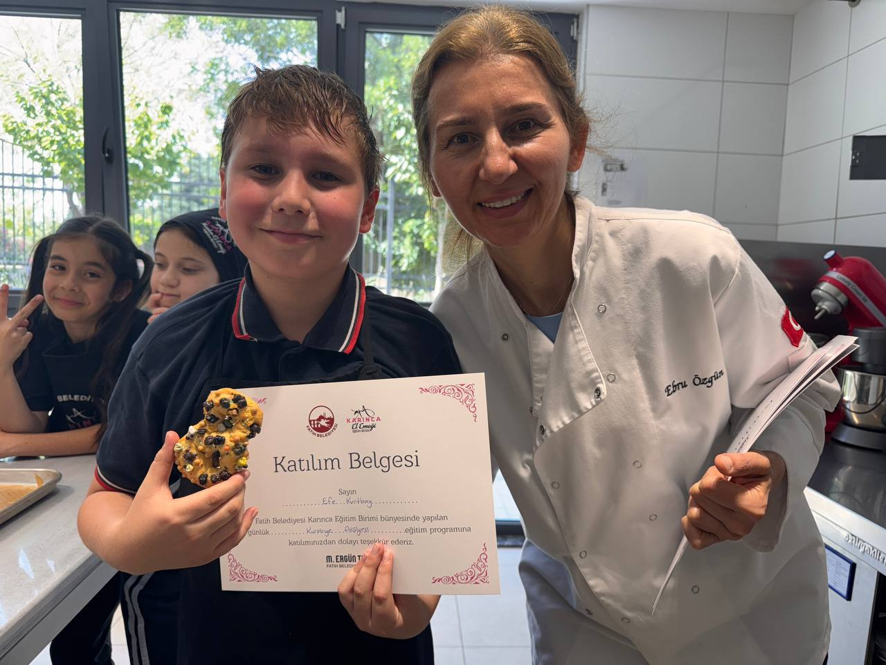 Bu çerçevede düzenlenen kurabiye atölyesi Silivrikapı’daki KARINCA Eğitim Mutfağı’nda, Büyük Reşitpaşa İlkokulu öğrencilerinin katılımıyla hayata geçirildi. Etkinlik yalnızca bir mutfak faaliyeti olmanın ötesinde, çocukların ilk kez profesyonel bir mutfak ortamıyla tanıştığı, ellerini unla buluşturduğu ve emek vererek üretmenin ne demek olduğunu doğrudan deneyimlediği anlamlı bir çalışmaya dönüştü.