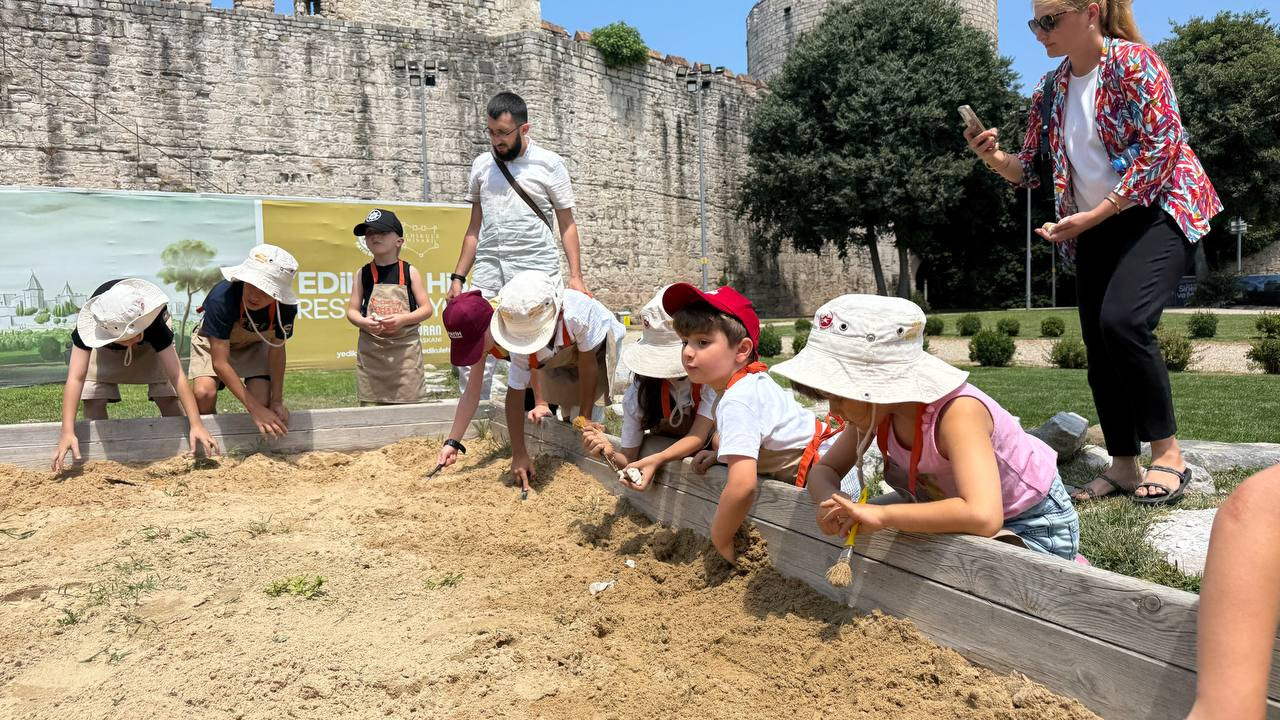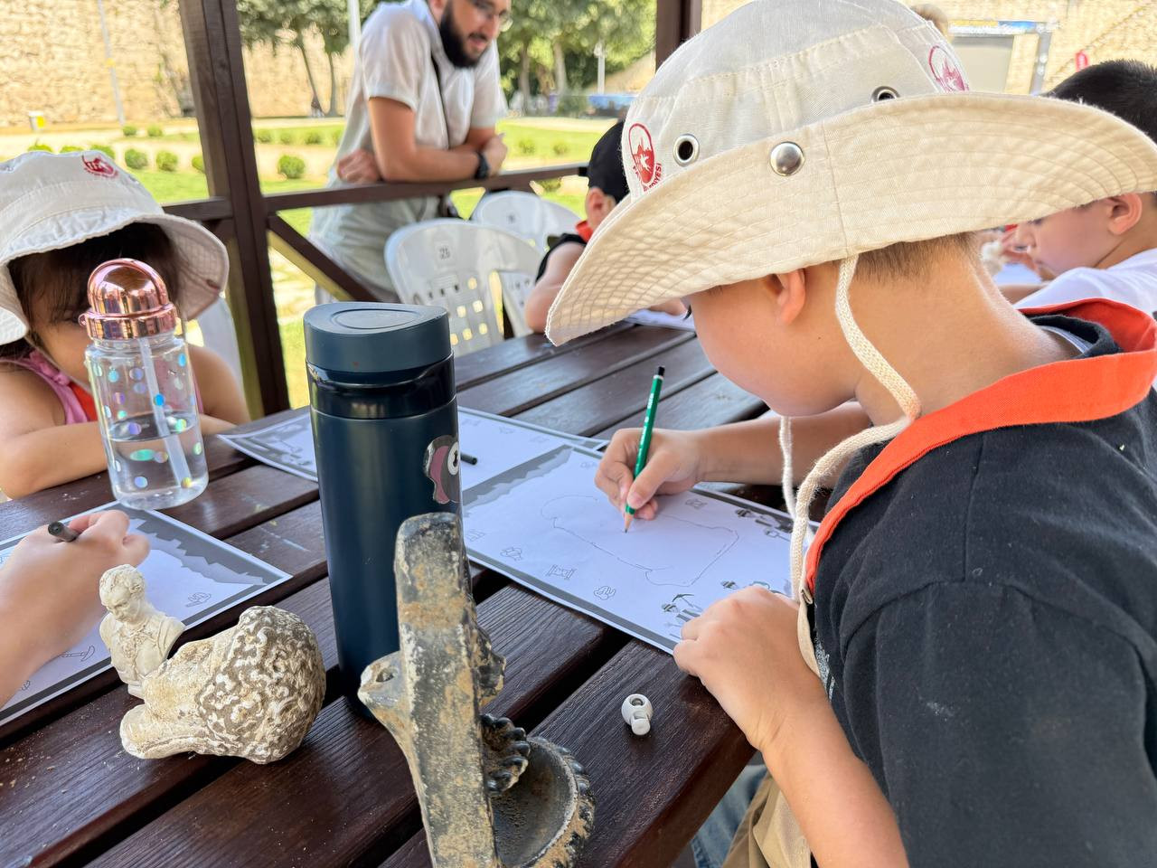 Yedikule Hisarı'nda düzenlenen Arkeoloji Atölyesi'nde çocuklar arkeolojik buluntuları keşfediyor ve tarihî nesnelerin korunması ile envanter oluşturma süreçlerini öğreniyor.
