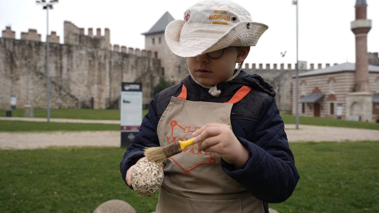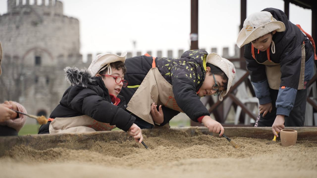 Yedikule Hisarı'nda düzenlenen Arkeoloji Atölyesi'nde çocuklar arkeolojik buluntuları keşfediyor ve tarihî nesnelerin korunması ile envanter oluşturma süreçlerini öğreniyor.