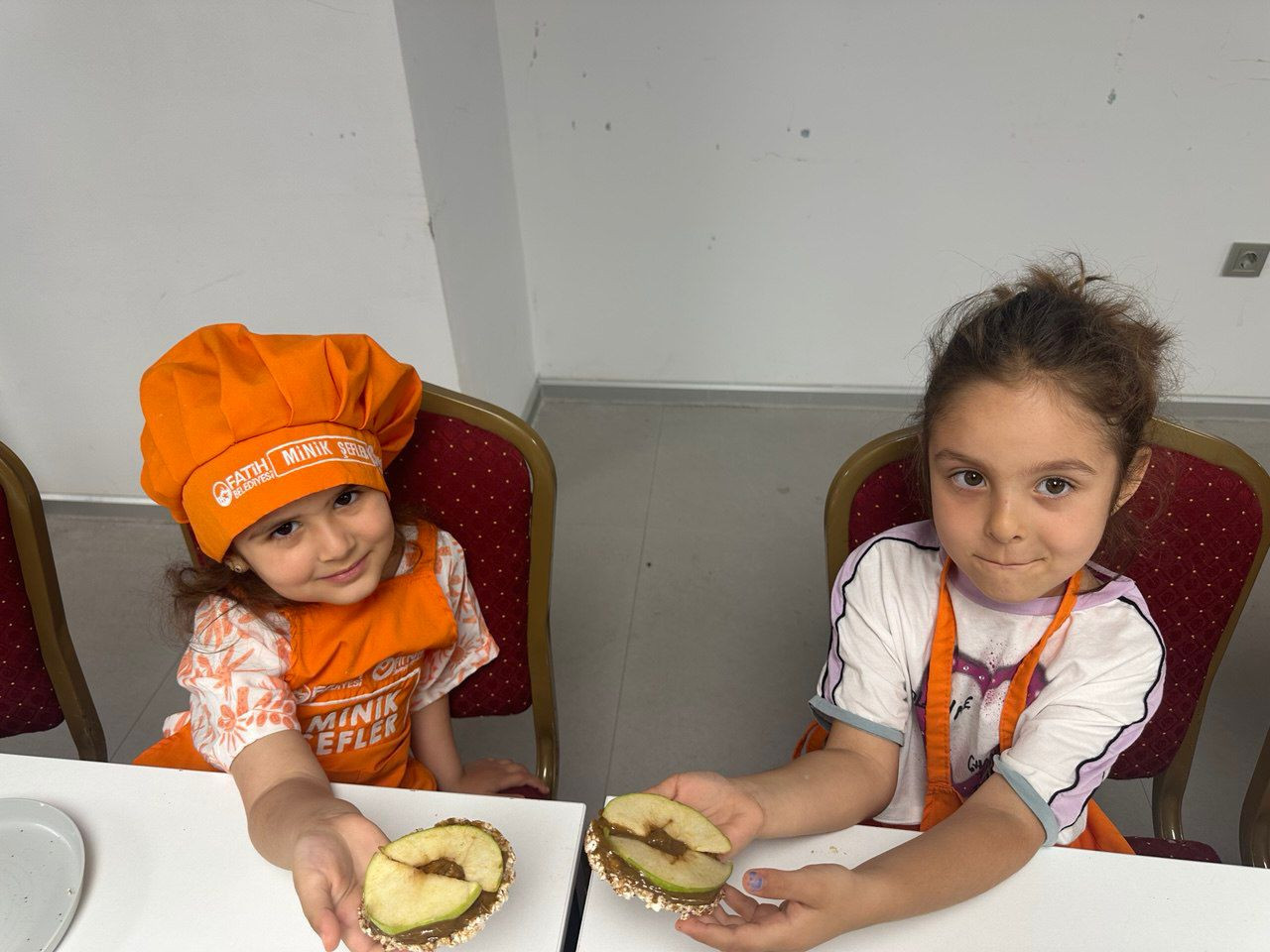 Kadın ve Aile Birimi’nin FitFatih projesi, Fındıkzade Çukurbostan Merkezi’nde çocuklara sağlıklı beslenme alışkanlıkları kazandırmak amacıyla “Minik Şefler” etkinliğini düzenliyor. Diyetisyenlerin rehberliğinde gerçekleşen etkinlikte çocuklar sağlıklı atıştırmalıklar hazırlıyor ve besin değerleri ile doğru beslenme konusunda önemli bilgiler öğreniyor. Mutfakta keyifli vakit geçiren minikler eğlenerek öğrenmenin tadını çıkarıyor.