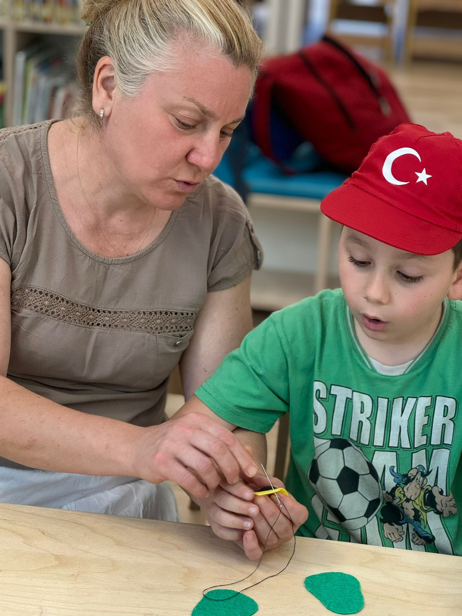 Silivrikapı Çocuk Kütüphanesi, minik ziyaretçilerine hem eğlenceli hem de öğretici atölyeler düzenlemeye devam ediyor. Bu kapsamda düzenlenen Anahtarlık Tasarım Atölyesi büyük ilgi gördü. Etkinliğe katılan çocuklar ve anneleri renkli keçelerle avokado tasarımı yaptılar. Verilen şablonları kullanarak çizimlerini yapan katılımcılar bu çizimleri kesip şekillendirerek dikim işlemlerini keyifle tamamladılar. Çocuklar kendi yaptıkları anahtarlıkları hatıra olarak yanlarında götürdüler ve bu süreçten mutluluk duyduklarını belirttiler. Kütüphanemiz çocukların yaratıcılığını ve el becerilerini geliştirmeye yönelik etkinlikler gerçekleştirmeyi sürdürüyor.