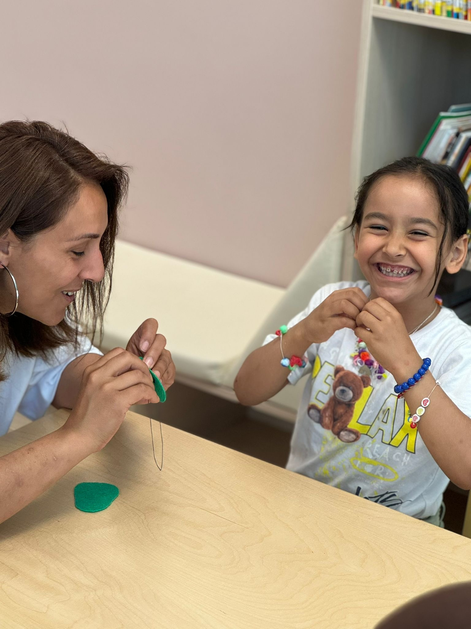 Silivrikapı FANÇO'nun ev sahipliğinde gerçekleştirilen atölyede çocuklar ve anneleri renkli keçeler kullanarak avokado temalı anahtarlıklar tasarlıyor.