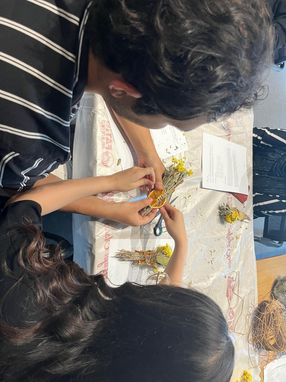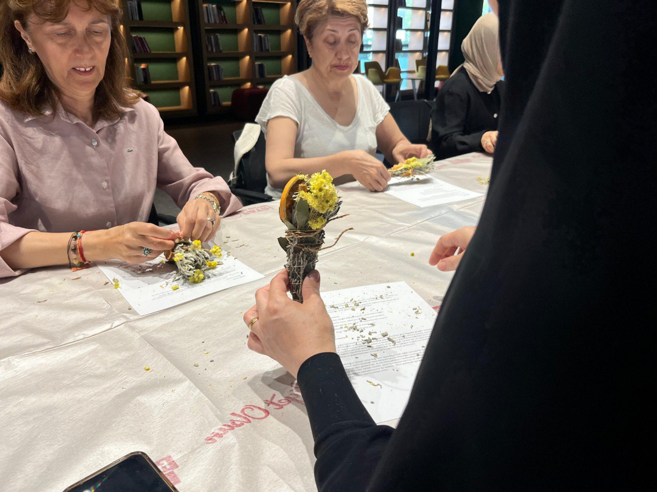 Etkinlik boyunca kurutulmuş lavanta, adaçayı, biberiye gibi geleneksel bitkilerin yanı sıra çeşitli çiçekler ve doğal iplerle hazırlanan demet tütsüler aracılığıyla doğanın sunduğu iyileştirici güce dikkat çekildi. Katılımcılar yalnızca tütsü yapmayı öğrenmekle kalmadı, aynı zamanda her bir bitkinin anlamını, tarihsel kullanımını ve taşıdığı enerjiyi de keşfetti.