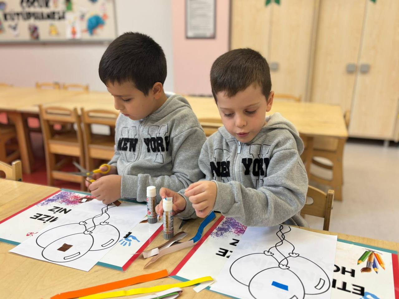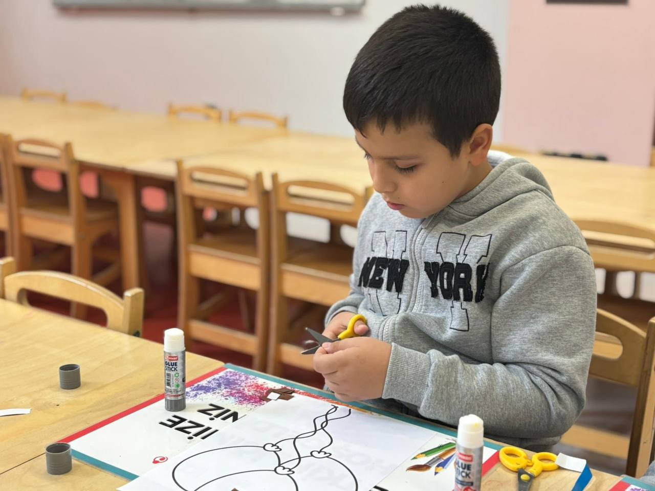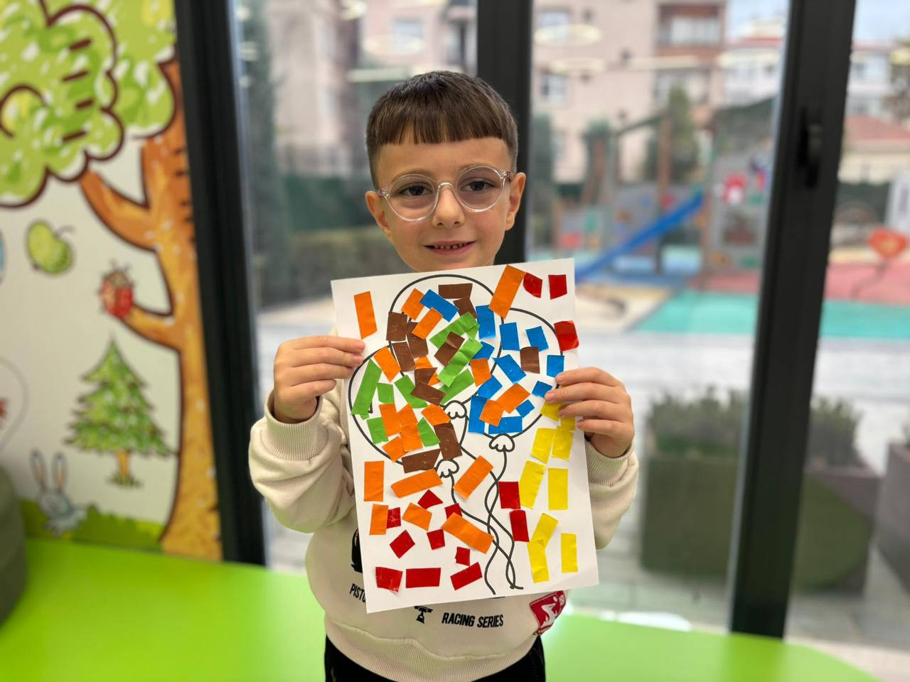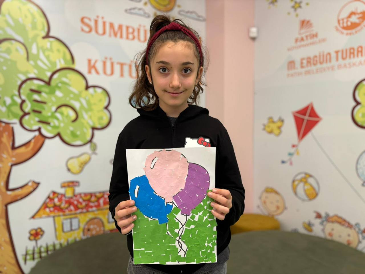 Etkinlik boyunca çocuklar yalnızca eğlenmekle kalmadı, aynı zamanda ince motor becerilerini geliştirdi, sabır ve dikkat gerektiren bir süreçten geçti. Her bir kesim, her bir yapıştırma işlemi onların küçük ellerinde adeta birer sanat hareketine dönüştü. Kâğıt parçaları birleşirken çocukların hayalleri de görünür hale geldi. Renklerin ve şekillerin uyumu kütüphaneyi canlı bir sanat galerisini andıran bir atmosfere bürüdü.