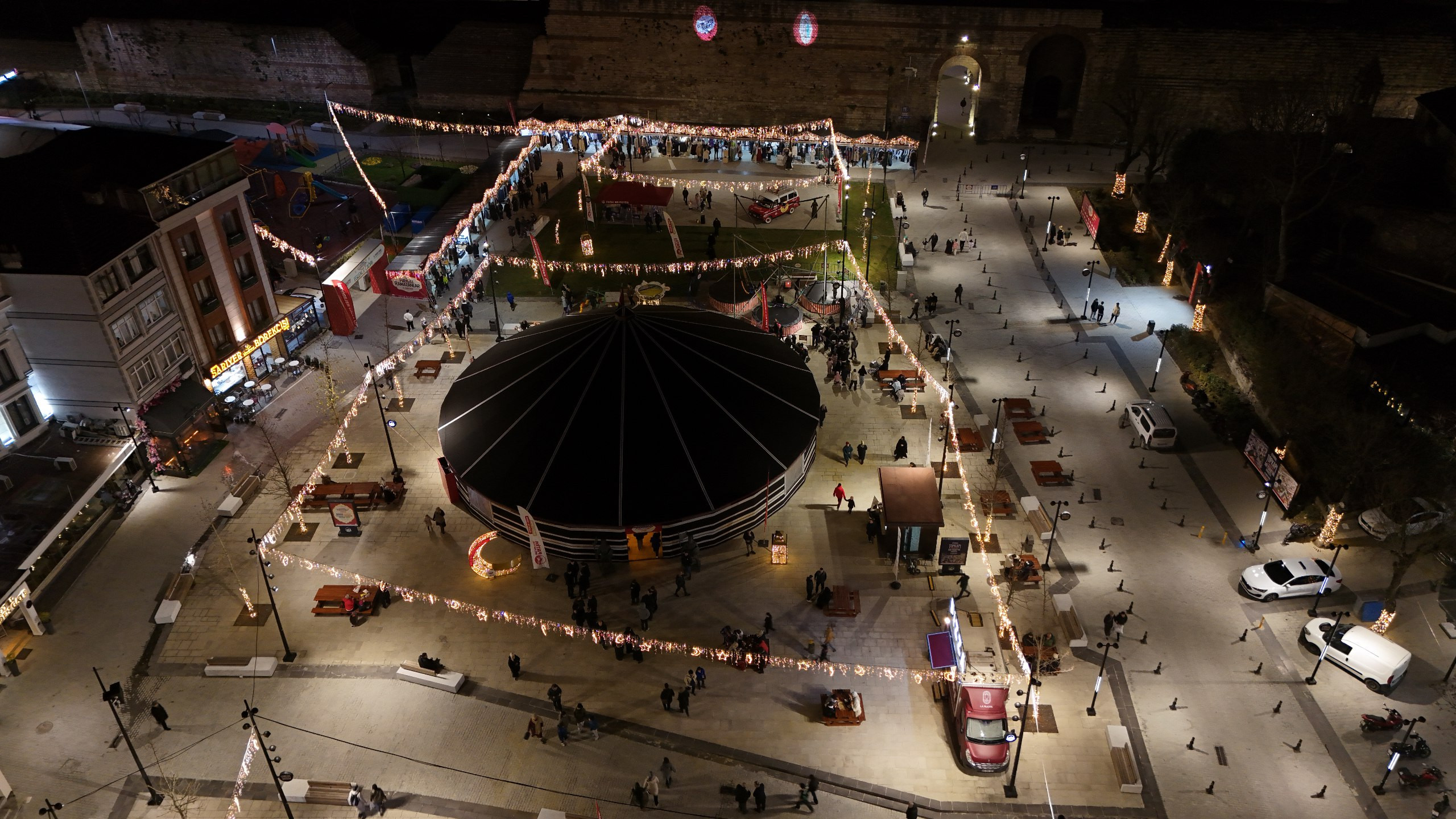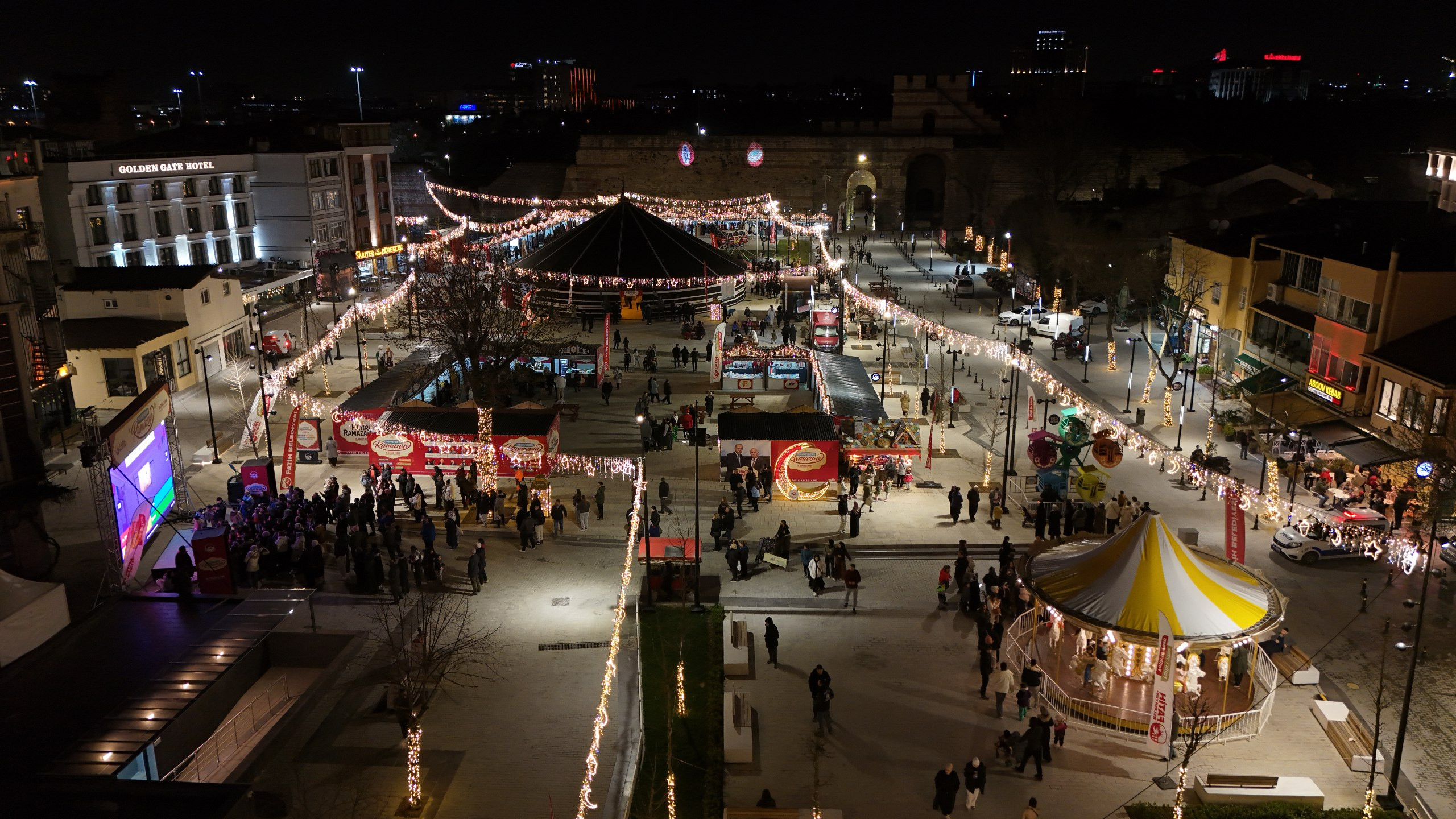Fatih Belediyesi tarafından tarihî yarımadaya kazandırılarak hemşehrilerimizin kullanımına sunulan Topkapı Kaleiçi Meydanı, Ramazan ayının başlamasıyla birlikte şehir hayatının akşam ritmini şekillendiren merkezlerden biri hâline geldi. Tarihî surların komşuluğunda konumlanan meydan, geçmişin izlerini taşıyan mekânsal yapısıyla günümüz şehir hayatının ihtiyaçlarını bir araya getirirken, yalnızca bir geçiş güzergâhı olmanın ötesine geçerek karşılaşmaların, sohbetlerin ve ortak zamanların paylaşıldığı bir kamusal alan olarak dikkat çekiyor. Gün boyunca farklı ihtiyaçlara cevap veren meydan, özellikle iftar sonrasında artan ziyaretçi yoğunluğuyla birlikte Ramazan ayının sosyal boyutunu kamusal alanda görünür kılan önemli merkezlerden biri olarak şehir yaşamındaki yerini güçlendiriyor.