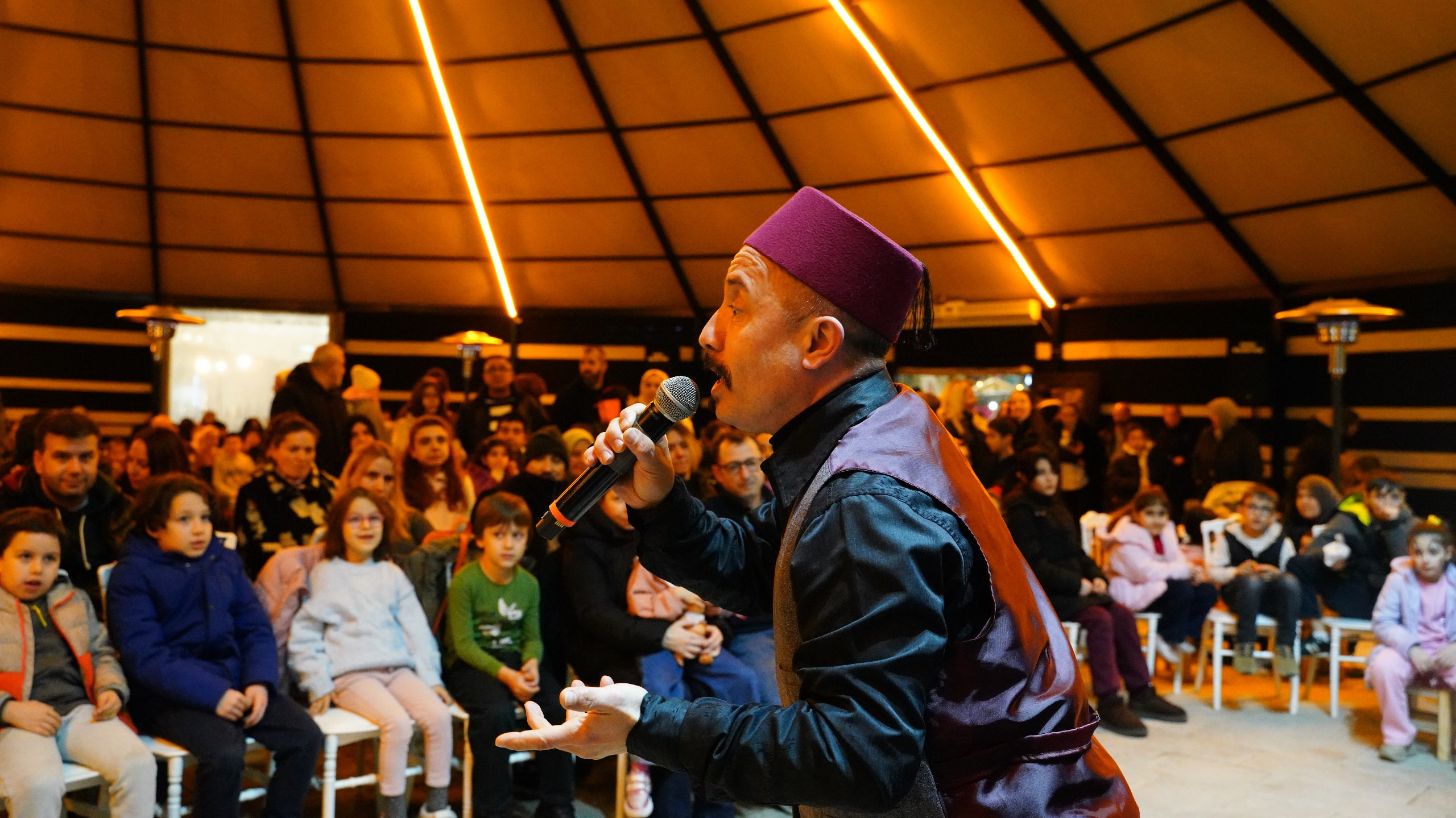 Meydanda kurulan Otağ Çadırı’nda gerçekleştirilen söyleşi ve dinleti programları ise Ramazan akşamlarının kültürel yönünü destekleyen önemli buluşmalar arasında yer alıyor. Çay ve kahve eşliğinde düzenlenen bu programlar, hemşehrilerimizin bir araya gelerek aynı ortamı paylaşmasına imkân tanırken, sözün ve düşüncenin kamusal alanda yer bulmasına katkı sağlıyor. Bu programlar, meydanın yalnızca fiziksel bir düzenleme alanı değil, aynı zamanda kültürel etkileşimin sürdüğü ve şehir hayatının sosyal dokusunu güçlendiren bir merkez olarak işlev görmesini destekliyor.