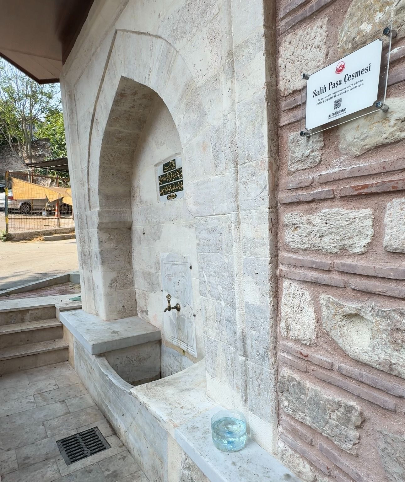 Cibali Mahallesi’ndeki Salih Paşa Çeşmesi’nin restorasyon çalışmaları kapsamında, ayna kısmındaki muhdes boya katmanları özenle temizlenerek yüzeyden uzaklaştırıldı, yan cephedeki muhdes sıva ise raspa edildi.