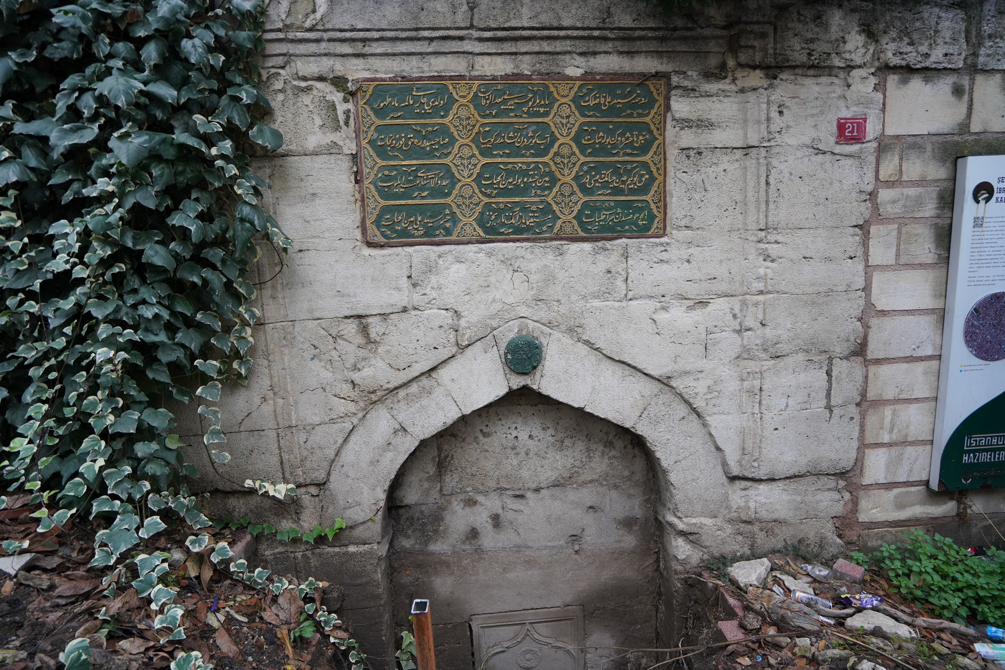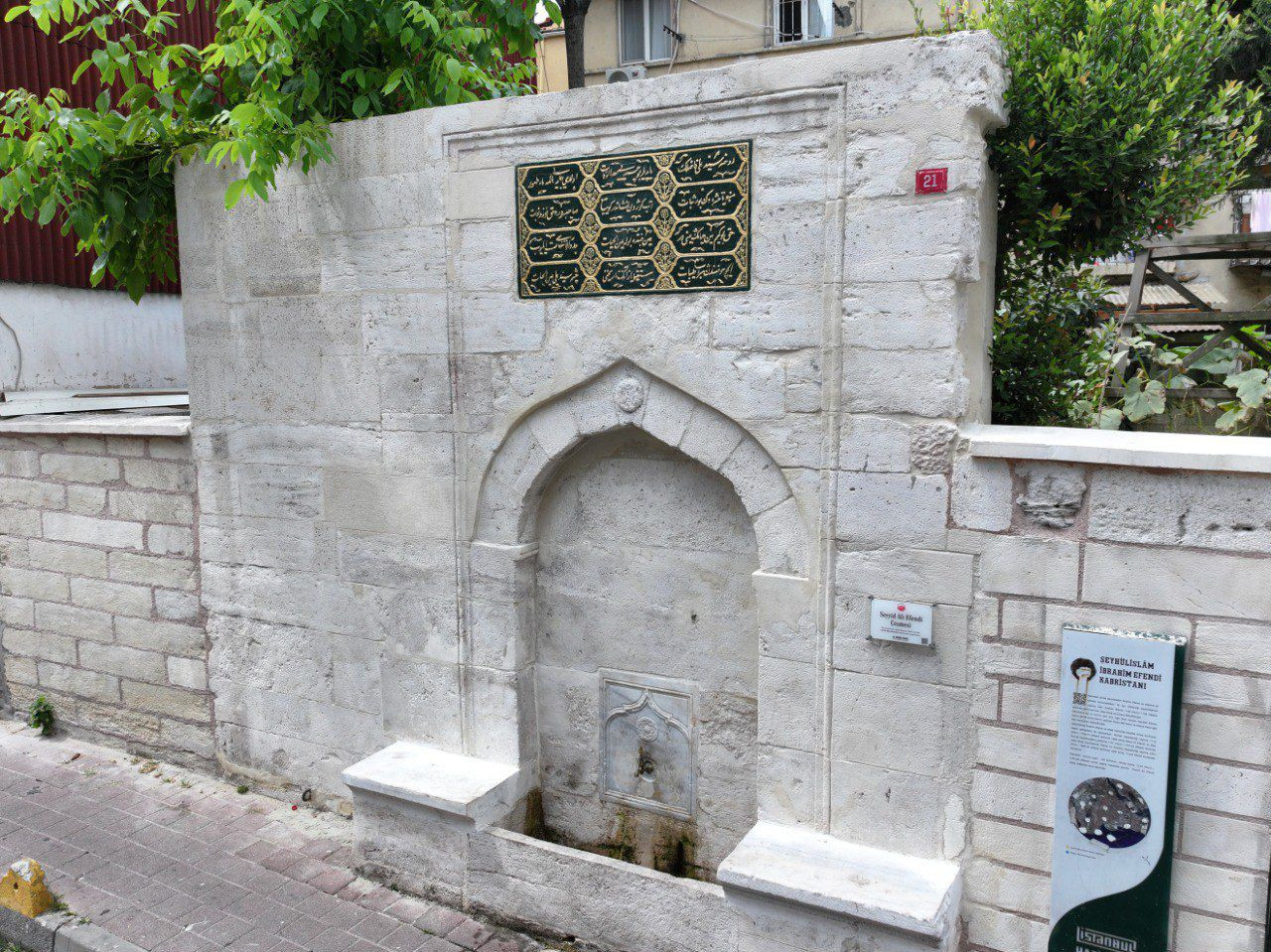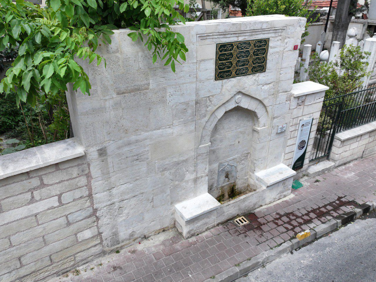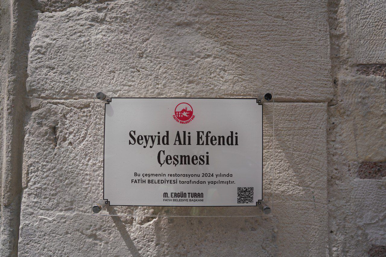 Atikali Mahallesi’ndeki Seyyid Ali Çeşmesi’nin restorasyonunda özgün mermer ayna taşı ve kurnası temizlenip onarıldı, eksik sekiler aslına uygun olarak yeniden imal edildi.