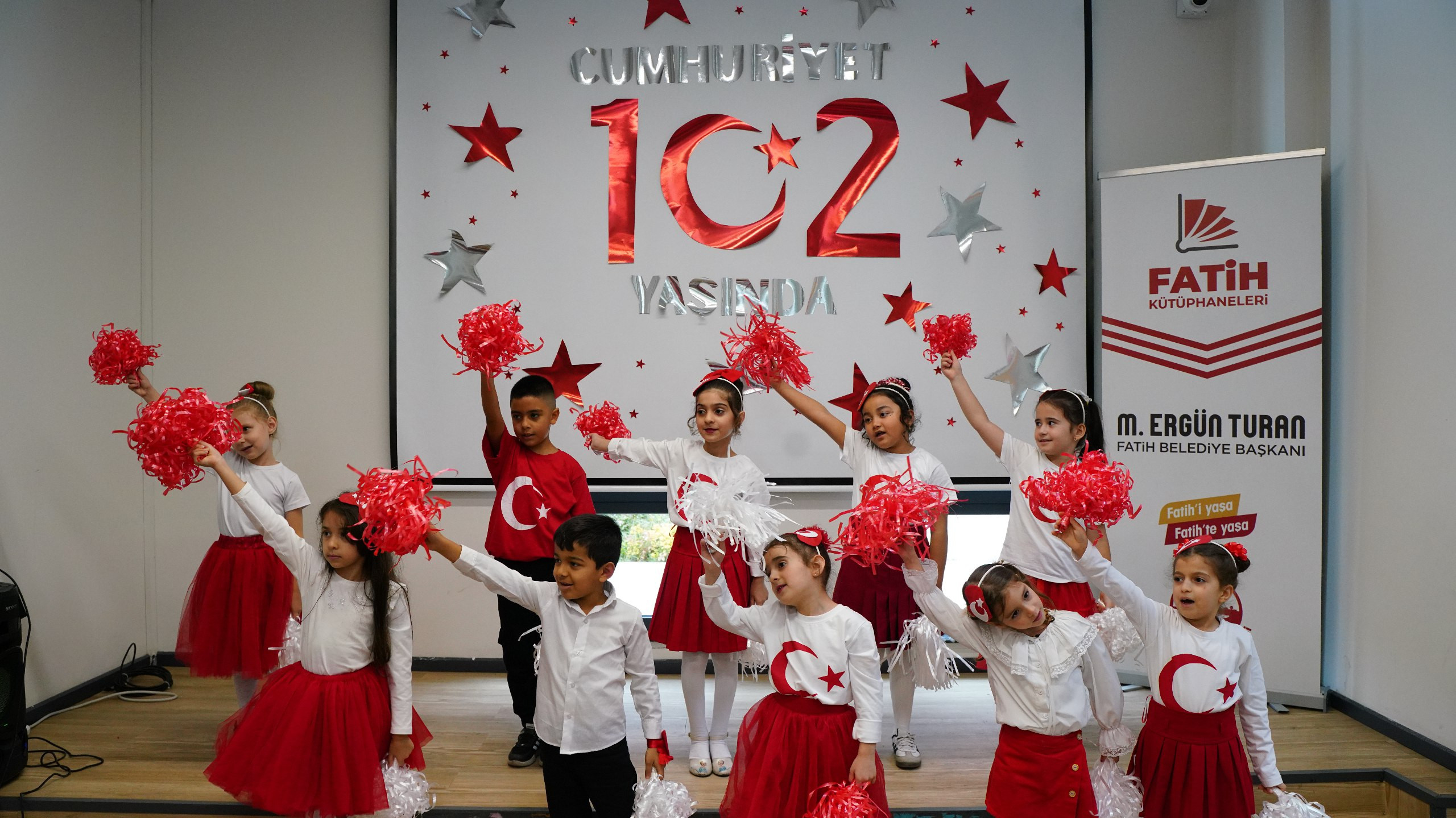 Fatih Belediyesi Kütüphaneler Birimi’ne bağlı Silivrikapı Çocuk Kütüphanesi, 29 Ekim Cumhuriyet Bayramı’nın 102. yıl dönümünü özel bir etkinlikle kutladı. Çocukların hazırladığı program hem Cumhuriyet bilincini pekiştirdi hem de katılımcılara duygu dolu anlar yaşattı.