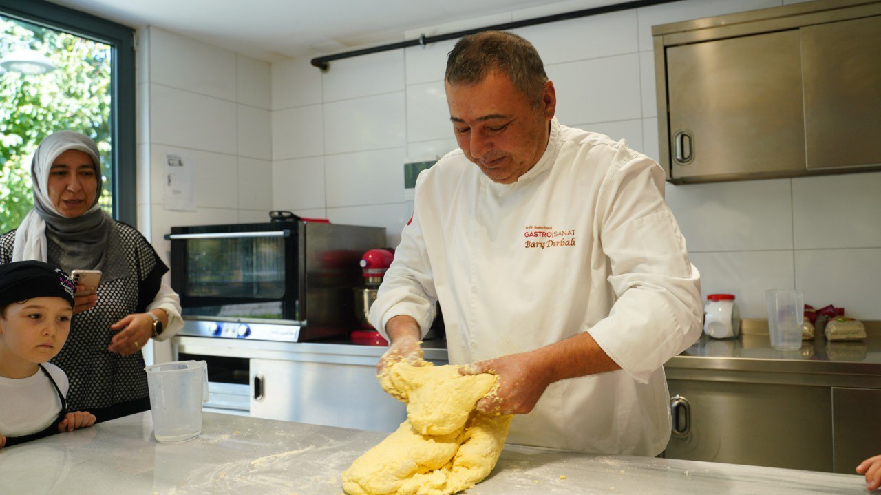 Atölyenin öne çıkan bölümlerinden biri susam kaplama süreciydi. Simidin üzerine kavrulmuş susamın dengeli ve estetik biçimde yayılması için hangi tekniklerin kullanılacağı, fırınlama sırasında bu susamın kabukla bütünleşmesi gibi detaylar adım adım aktarıldı. Her bir katılımcı simidin dış görünümündeki o tanıdık görüntünün arkasında ne kadar hassas bir emek olduğunu bizzat deneyimleyerek fark etti.