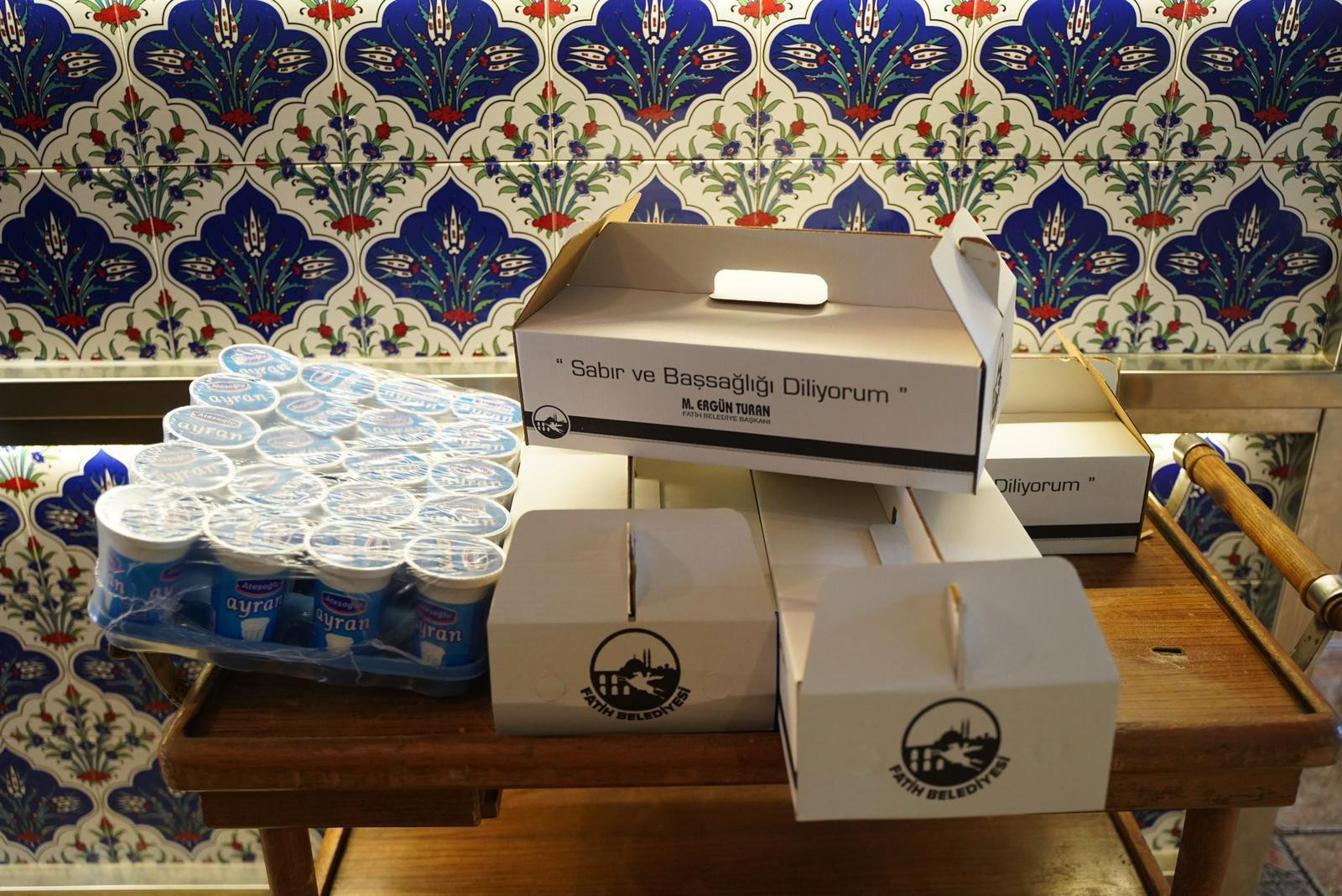 Fatih Belediyesi vefat eden vatandaşlarının yakınlarına destek olmak amacıyla cenaze ikramı hizmeti sunuyor. Bu hizmet kapsamında taziye ziyaretlerine gelen misafirlere lahmacun ve ayran ikram ediliyor.