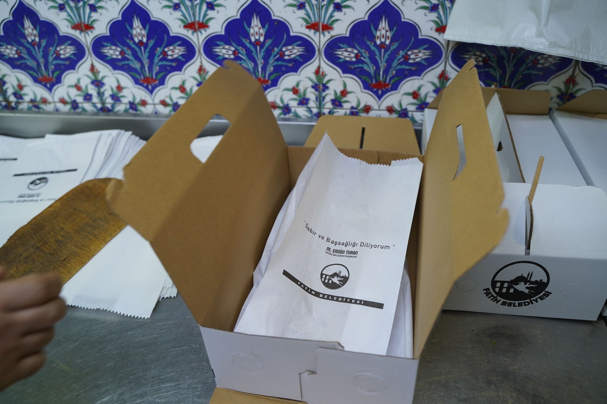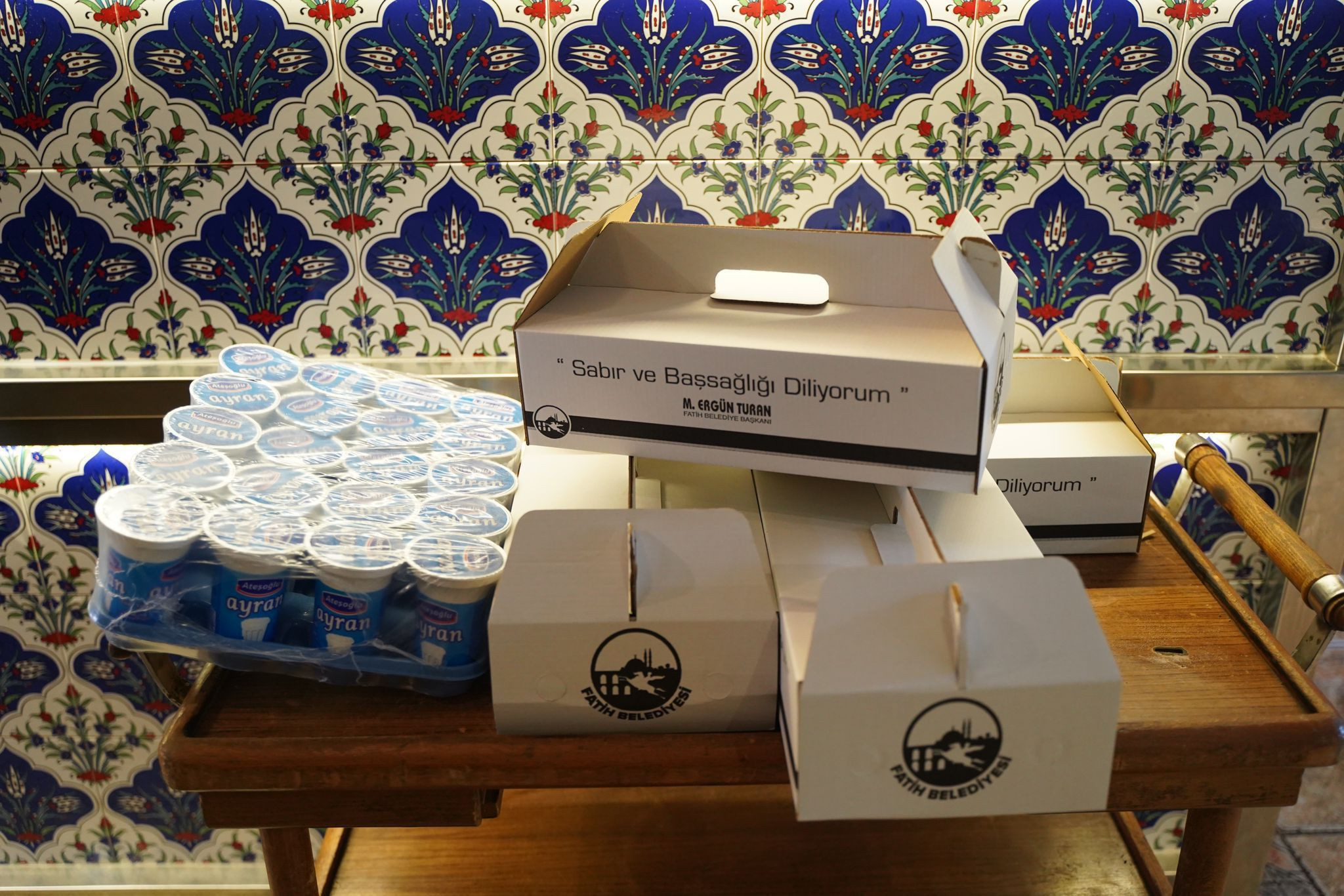 Fatih Belediyesi vefat eden vatandaşlarının yakınlarına destek olmak amacıyla cenaze ikramı hizmeti sunuyor. Bu hizmet kapsamında taziye ziyaretlerine gelen misafirlere lahmacun ve ayran ikram ediliyor.