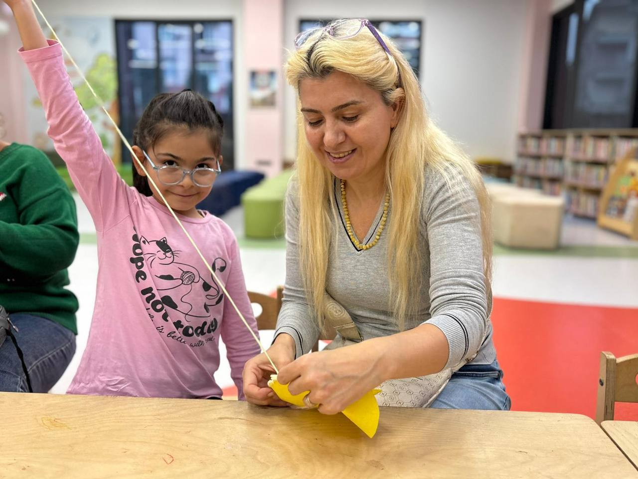 Sümbülefendi Çocuk Kütüphanesi’nin ev sahipliğinde gerçekleştirilen bu çalışma, hem çocuk gelişimine katkı sunan hem aile içi etkileşimi güçlendiren bir buluşma olarak tamamlandı. Kütüphaneler Birimi’nin düzenlediği program, çocuklara el becerisi kazandırmanın yanı sıra üretmenin sakinliğini, birlikte çalışmanın değerini ve paylaşmanın neşesini bir araya getirdi.