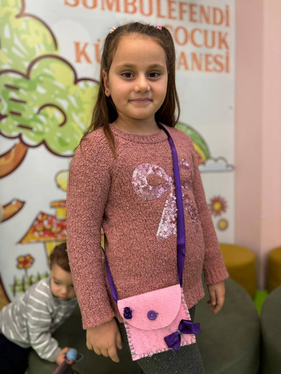 Kütüphane ekibi, süreci baştan sona takip ederek küçük katılımcıların ihtiyaç duyduğu noktalarda destek sağladı. Her çocuk, kendi emeğiyle diktiği çantayı tamamladığında ortaya çıkan ürün sadece bir çanta olmaktan öte, çocuğun kendi elleriyle gerçekleştirdiği ilk dikiş deneyiminin sembolü hâline geldi. Etkinliğin sonunda çantalar çocuklara hediye edilerek günün hatırası kalıcı bir nesneye dönüştürüldü.