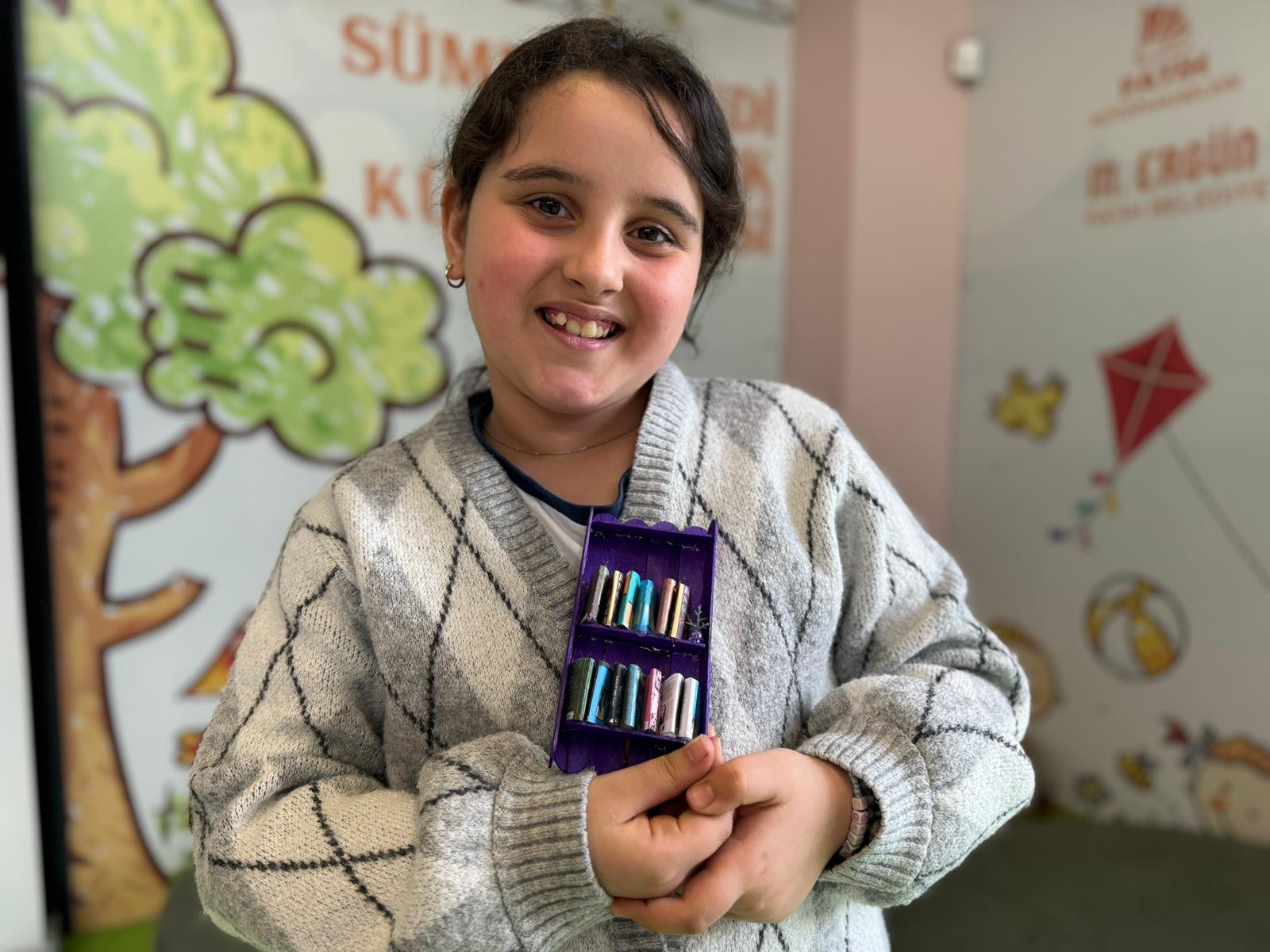 Etkinliğin uygulama aşamasında dekoratif unsurlar da önemli bir yer tuttu. Çocuklar, boncuklardan hazırladıkları minyatür bitkilerle raflarını süsledi. Küçük aksesuarlarla zenginleştirilen tasarımlar, her katılımcının kendi özgün yorumunu yansıtan çalışmalar ortaya çıkardı. Bu süreçte çocuklar, üretim odaklı öğrenme deneyimi yaşarken aynı zamanda paylaşım ve birlikte çalışma kültürünü de pekiştirdi.