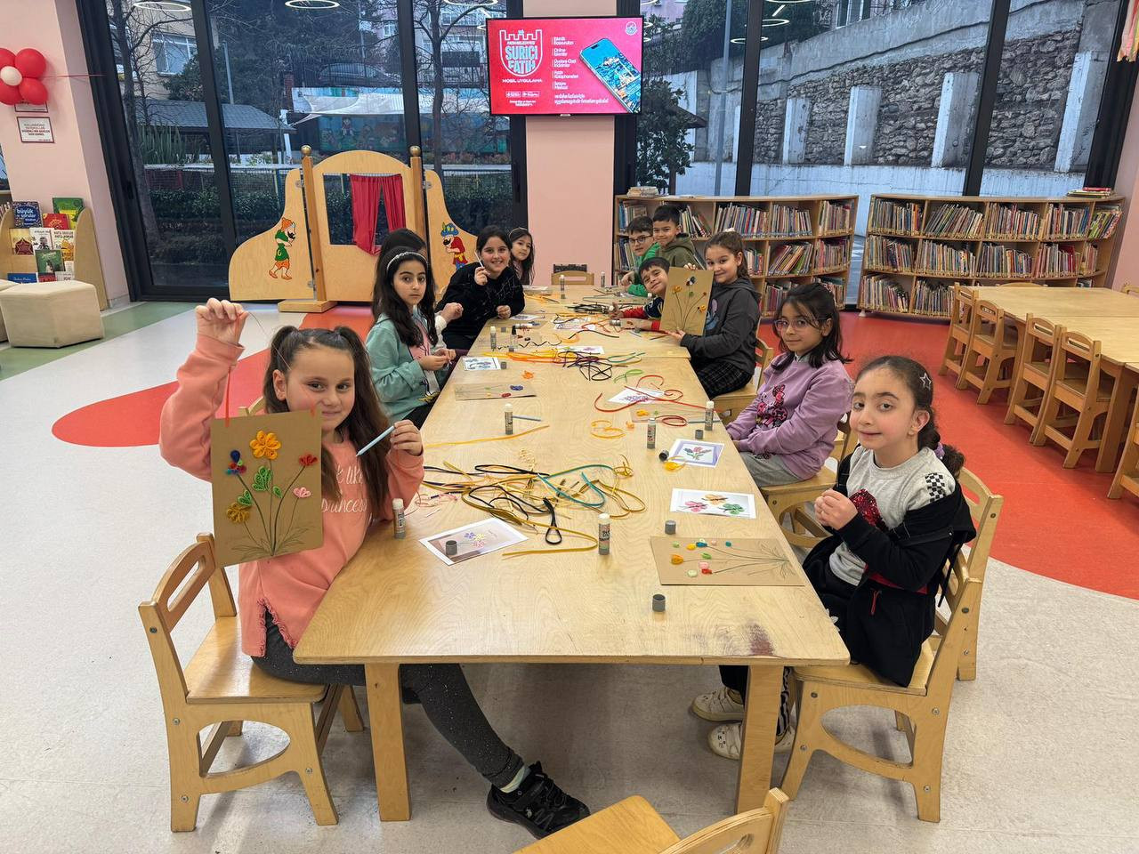 Kütüphane ortamında gerçekleştirilen bu etkinlik, çocukların sanatsal ifade becerilerini geliştirmesinin yanı sıra kütüphaneleri çok yönlü bir öğrenme alanı olarak deneyimlemelerine de katkı sağladı. Üretim, paylaşım ve öğrenme odaklı bu buluşma, çocukların özgüven kazanmalarına ve kendi emeklerinin karşılığını görmelerine olanak tanıdı.