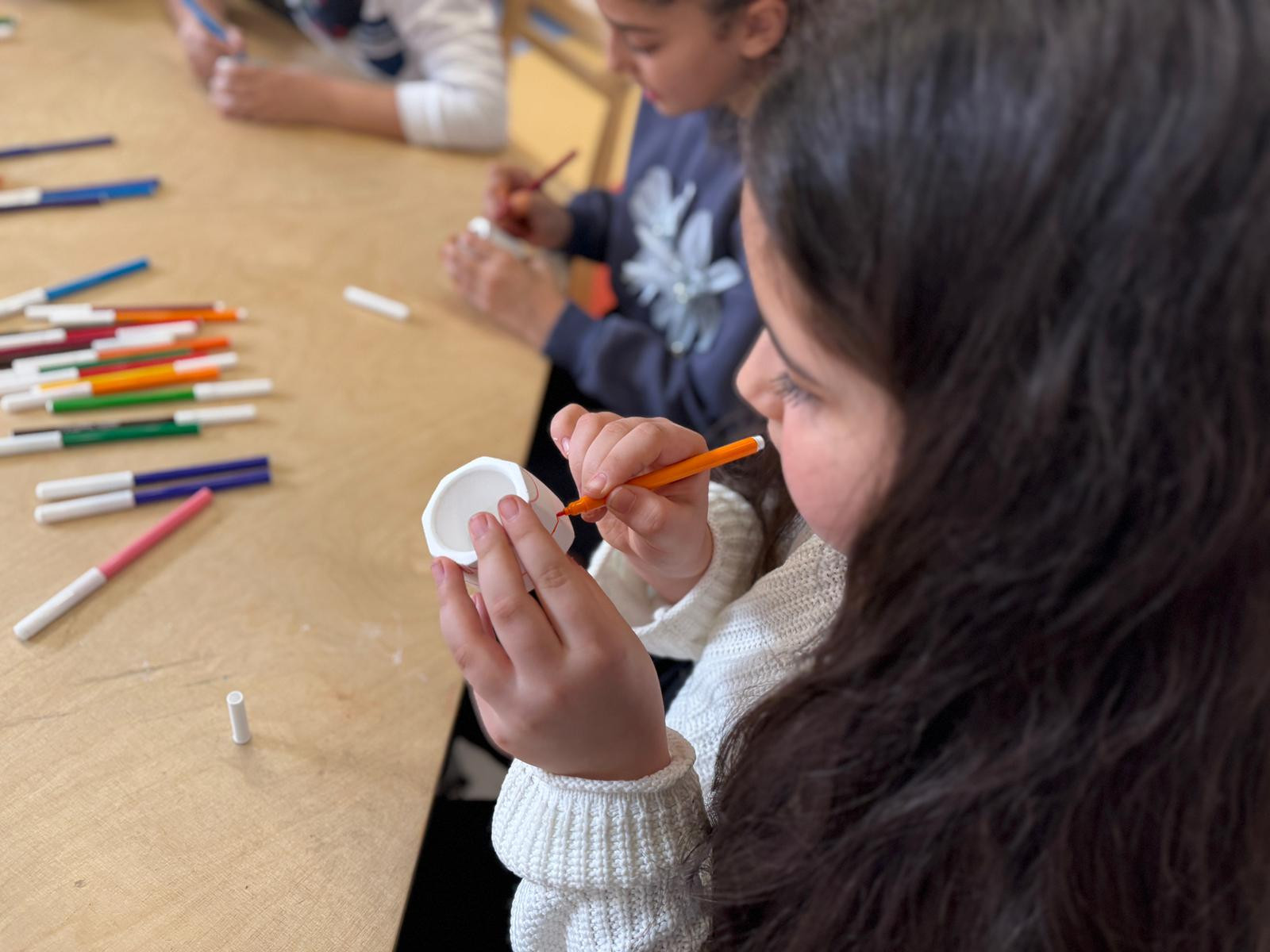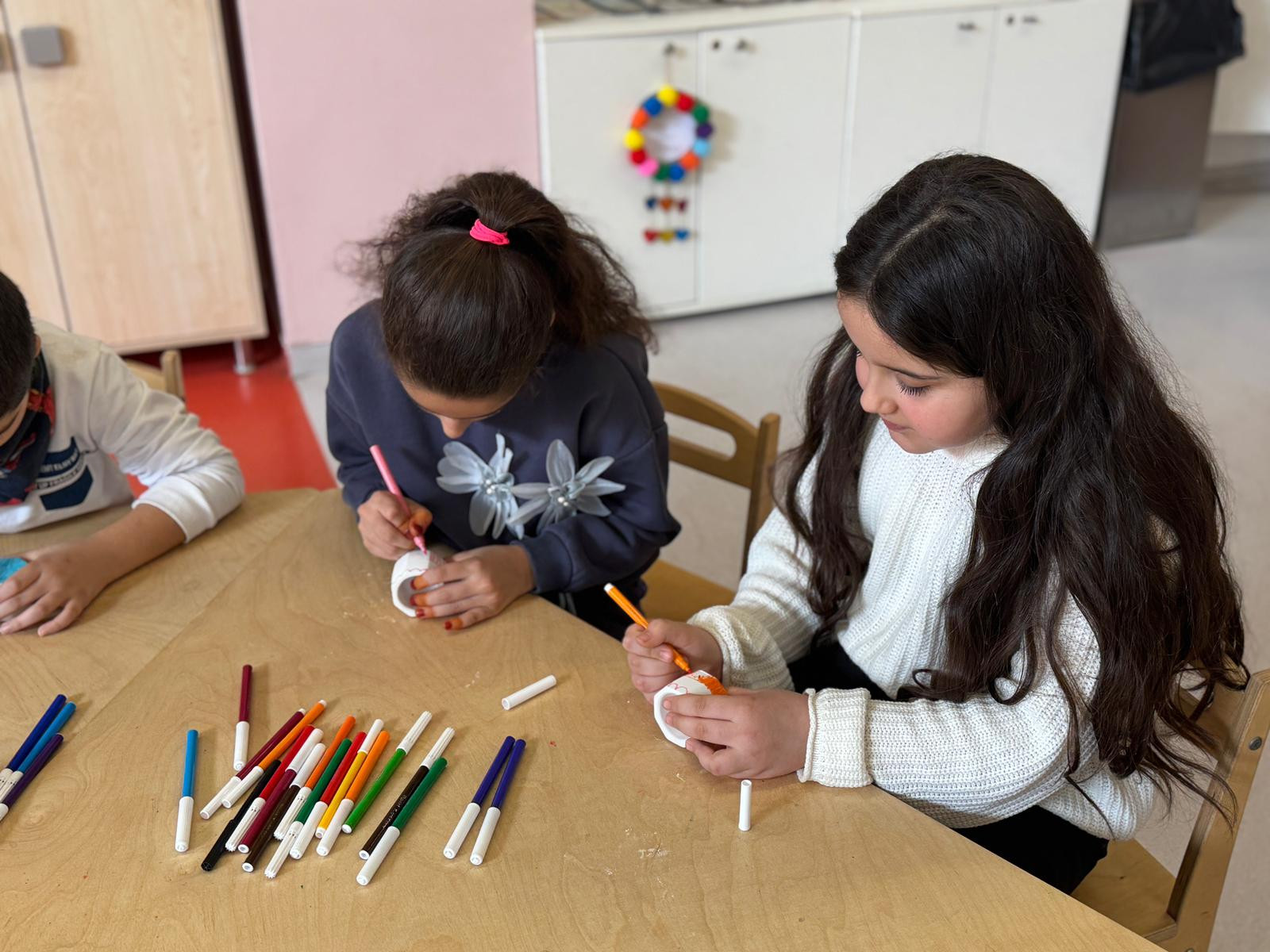 Mumlukların kurumasının ardından etkinliğin ikinci aşamasına geçildi. Çocuklar boyalarını ve fırçalarını alarak kendi zevklerine göre mumluklarını süslemeye başladı. Kimisi geometrik desenlere yöneldi, kimisi doğadan ilham alarak çiçekler, dalgalar ve yıldızlar çizdi. Kimi çocuklar renk geçişleriyle özgün kompozisyonlar yaratırken kimileri sade ama anlamlı dokunuşlarla eserlerini tamamladı. Bu süreçte her bir çocuk hayal gücünü renklerle ifade etme fırsatı buldu.