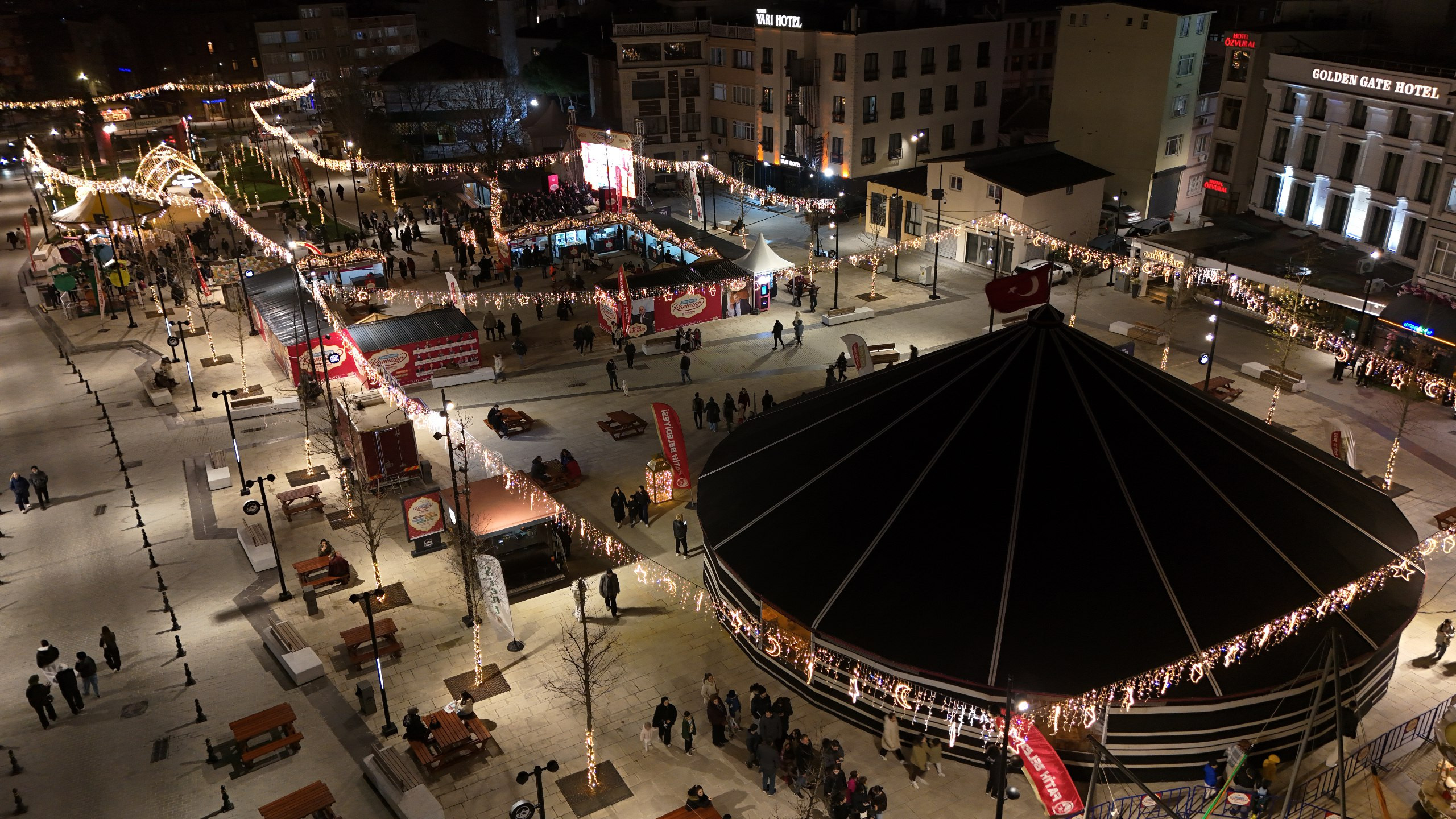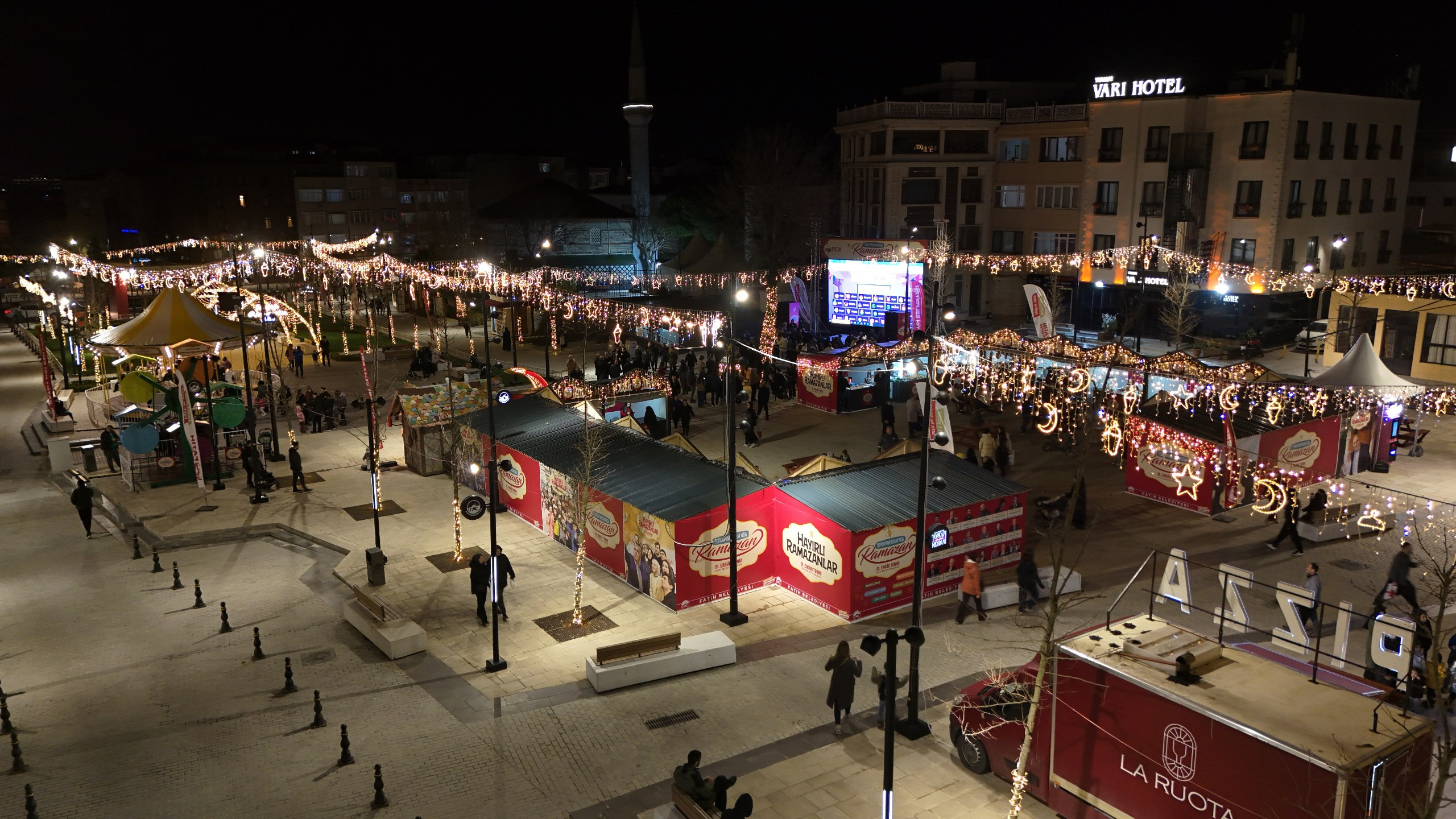 Ramazan ayı boyunca meydanda kurulan çarşı alanı, hemşehrilerimizin yoğun ilgi gösterdiği bölümler arasında yer alıyor. Yayınevlerinin, geleneksel el emeği ürünlerin, hediyelik eşya stantlarının ve çeşitli üreticilerin bulunduğu bu alan, kültürel üretim ile şehir hayatı arasında doğrudan bir bağ kurulmasına katkı sağlıyor. Kitaplarla kurulan temas, geleneksel üretimlerin kamusal alanda yer bulması ve farklı üreticilerin hemşehrilerimizle aynı zeminde buluşması, meydanın sosyal işlevini güçlendiren önemli unsurlar arasında yer alıyor. Hemşehrilerimiz bu alanda yalnızca alışveriş yapmıyor, aynı zamanda vakit geçirerek, sohbet ederek ve birlikte bulunarak Ramazan ayının paylaşım kültürünü şehir mekânı içinde sürdürüyor.