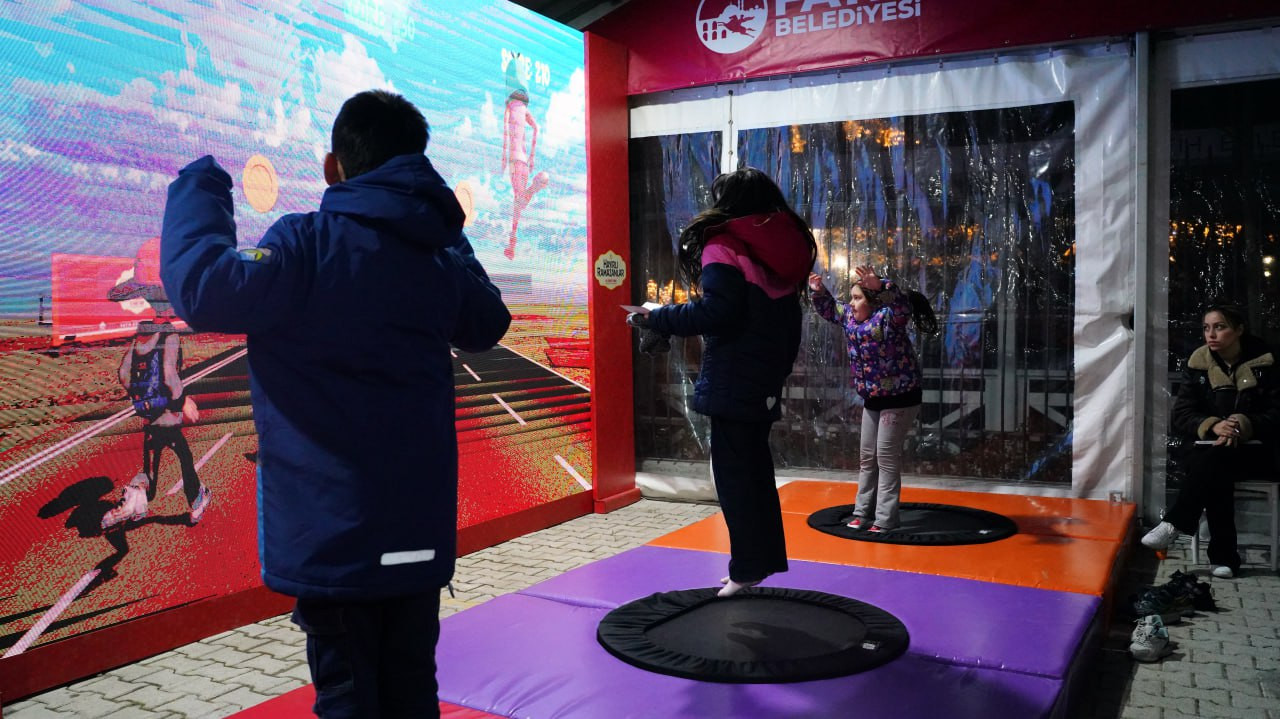 Çocuklarımız için hazırlanan etkinlik alanları ve Çocuk Eğlence Çadırı da Ramazan akşamlarının en hareketli bölümleri arasında yer alıyor. Düzenlenen etkinliklerle çocuklarımız kamusal alanda aktif biçimde yer alırken aileler de birlikte vakit geçirme imkânı buluyor. Halkla İlişkiler Ofisimizin mobil eğlence aracı Süperbüs de belirli aralıklarla meydanda konumlanarak çocuklarımızla buluşmayı sürdürüyor. Süperbüs’te gerçekleştirilen etkinlikler, farklı yaş gruplarının aynı şehir mekânında bir araya gelmesine katkı sağlarken meydanın kapsayıcı yapısını da güçlendiriyor. Böylece Ramazan akşamları yalnızca yetişkinler için değil, çocuklarımız için de hareketli ve paylaşım dolu zamanlara dönüşüyor.