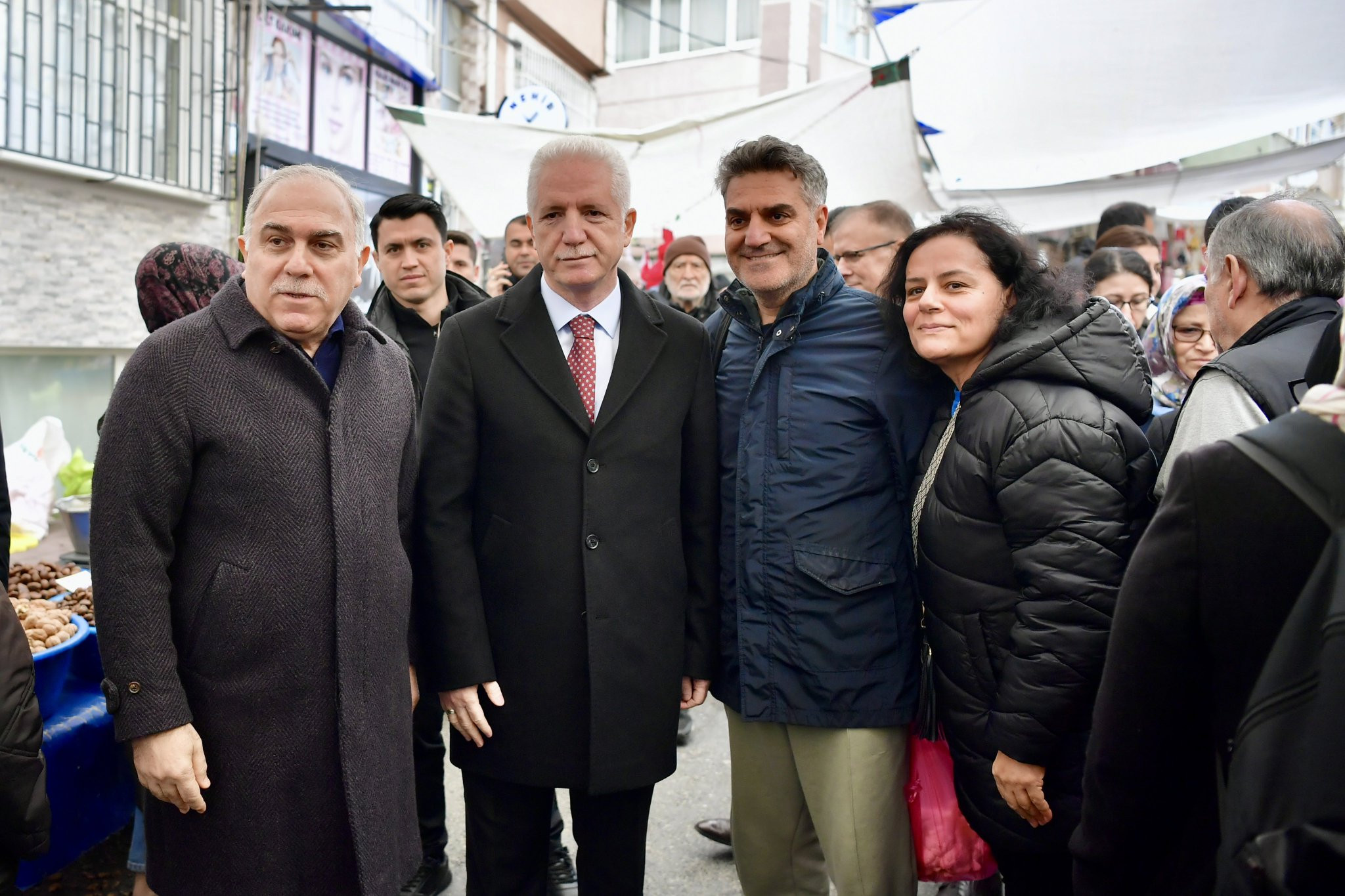 Fatih Belediye Başkanı M. Ergün Turan, İstanbul Valisi Davut Gül ve Fatih Kaymakamı Cafer Sarılı ile birlikte Cumartesi Pazarı’nı ziyaret ederek hemşehrilerimizle bir araya geldi. Ramazan ayının bereketiyle hareketlenen pazar alanında gerçekleşen ziyaret, vatandaşlarımızın günlük hayatının en canlı buluşma noktalarından birinde samimi karşılaşmalara sahne oldu.