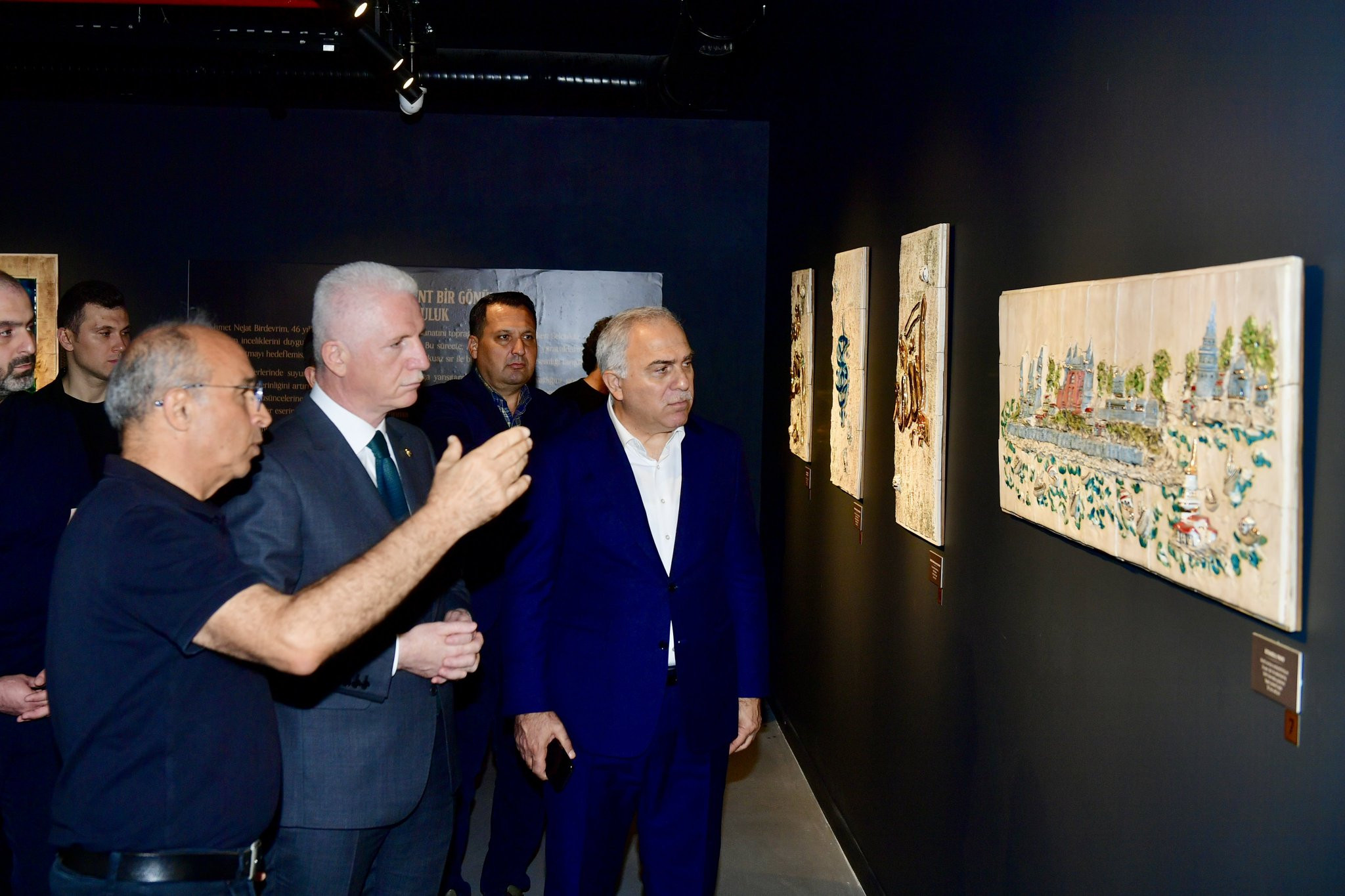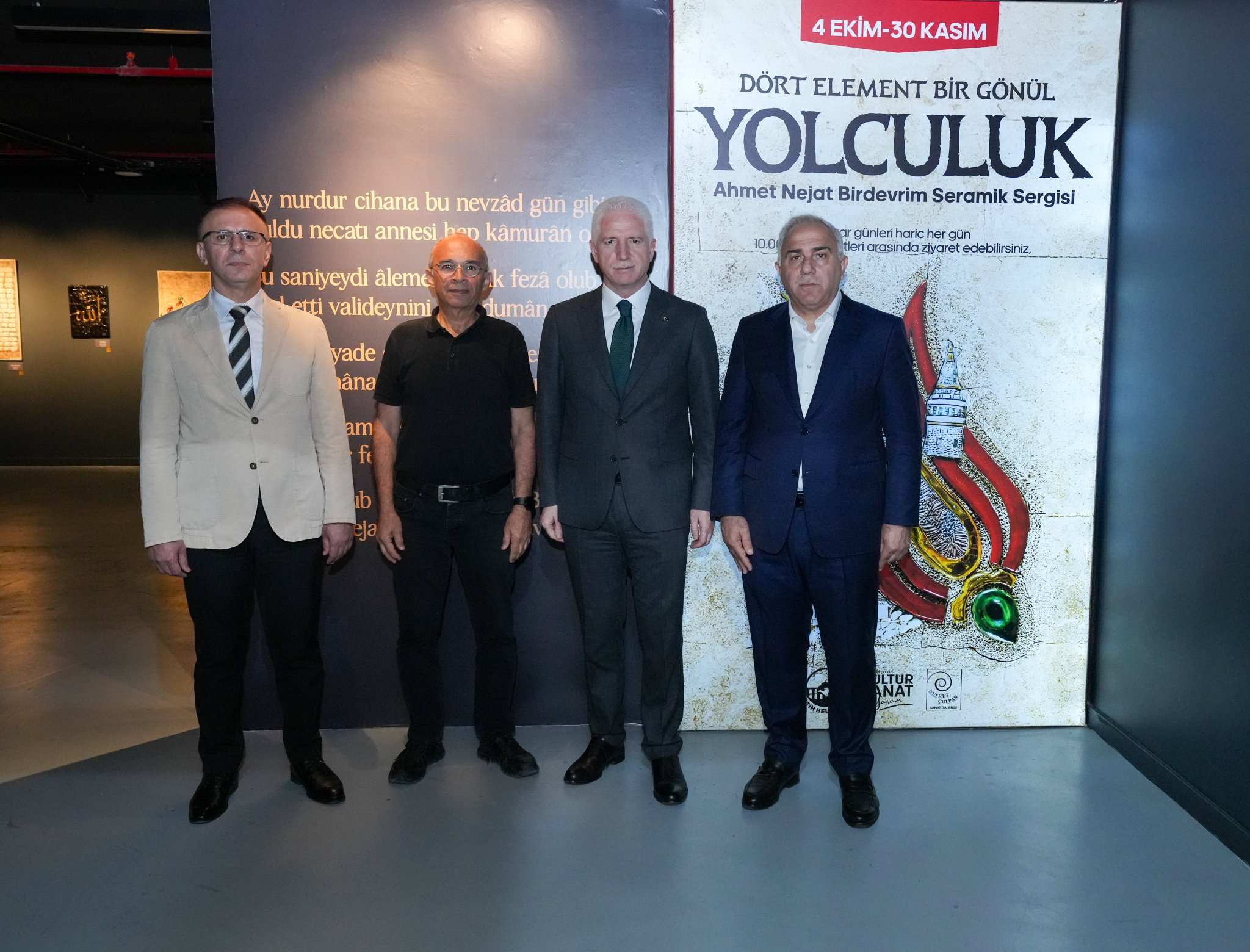İstanbul Valisi Davut Gül ile Fatih Belediye Başkanı M. Ergün Turan, seramik sanatçısı Ahmet Nejat Birdevrim’in “Dört Element Bir Gönül; Yolculuk” adlı sergisini Nusret Çolpan Sanat Galerisi’nde ziyaret etti. Başkan Turan, serginin 30 Kasım’a kadar süreceğini belirterek tüm hemşehrilerini davet etti.
