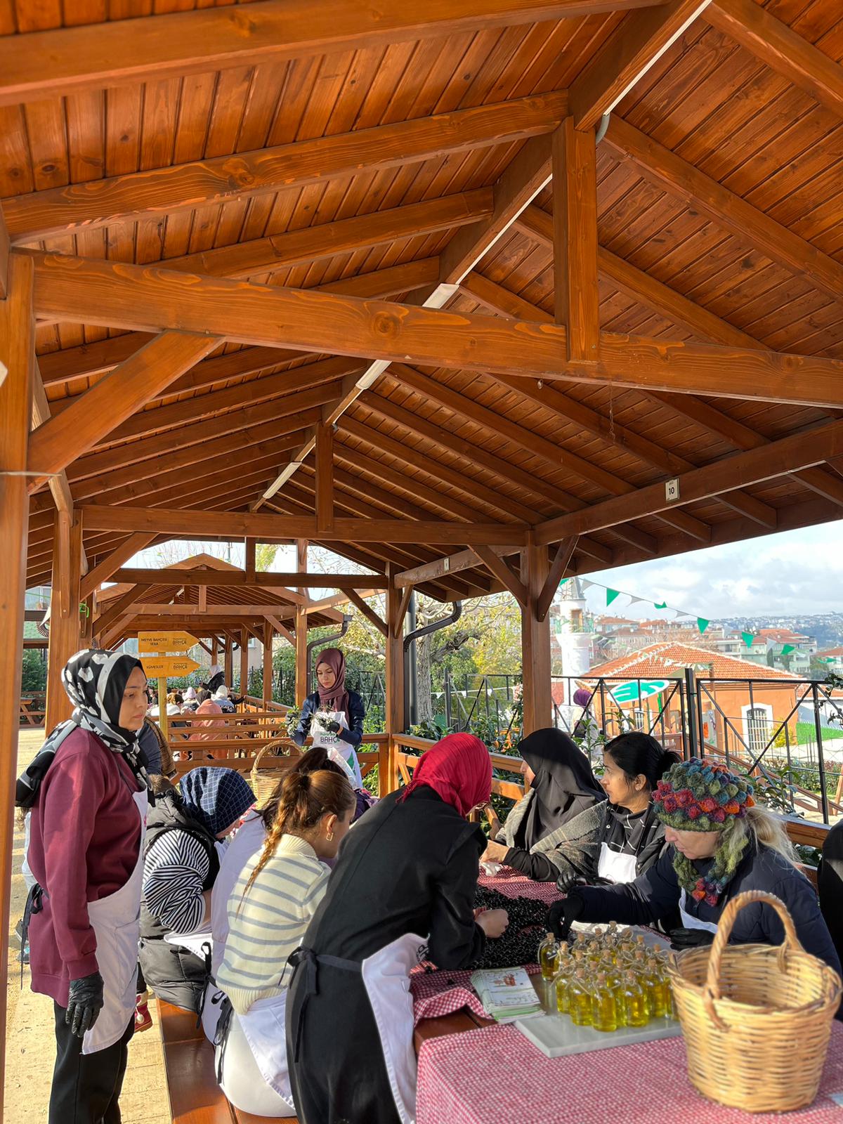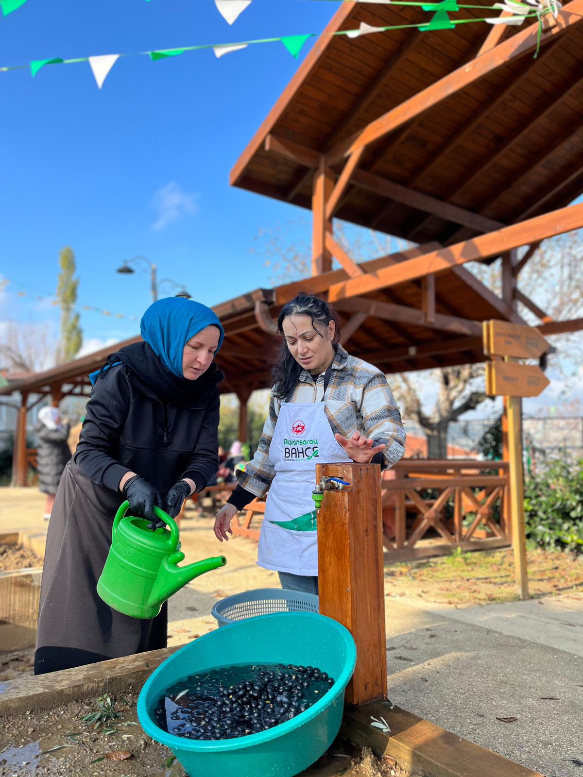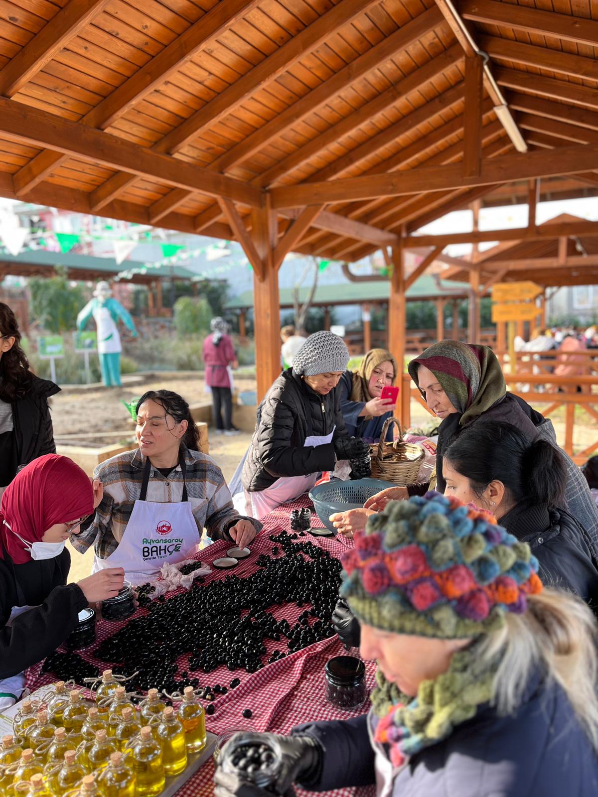 Ayvansaray Bahçe'de gerçekleşen Zeytin Hasadı etkinliğinde toplanan zeytinler Fatihli vatandaşlarla birlikte salamura yapıldı.