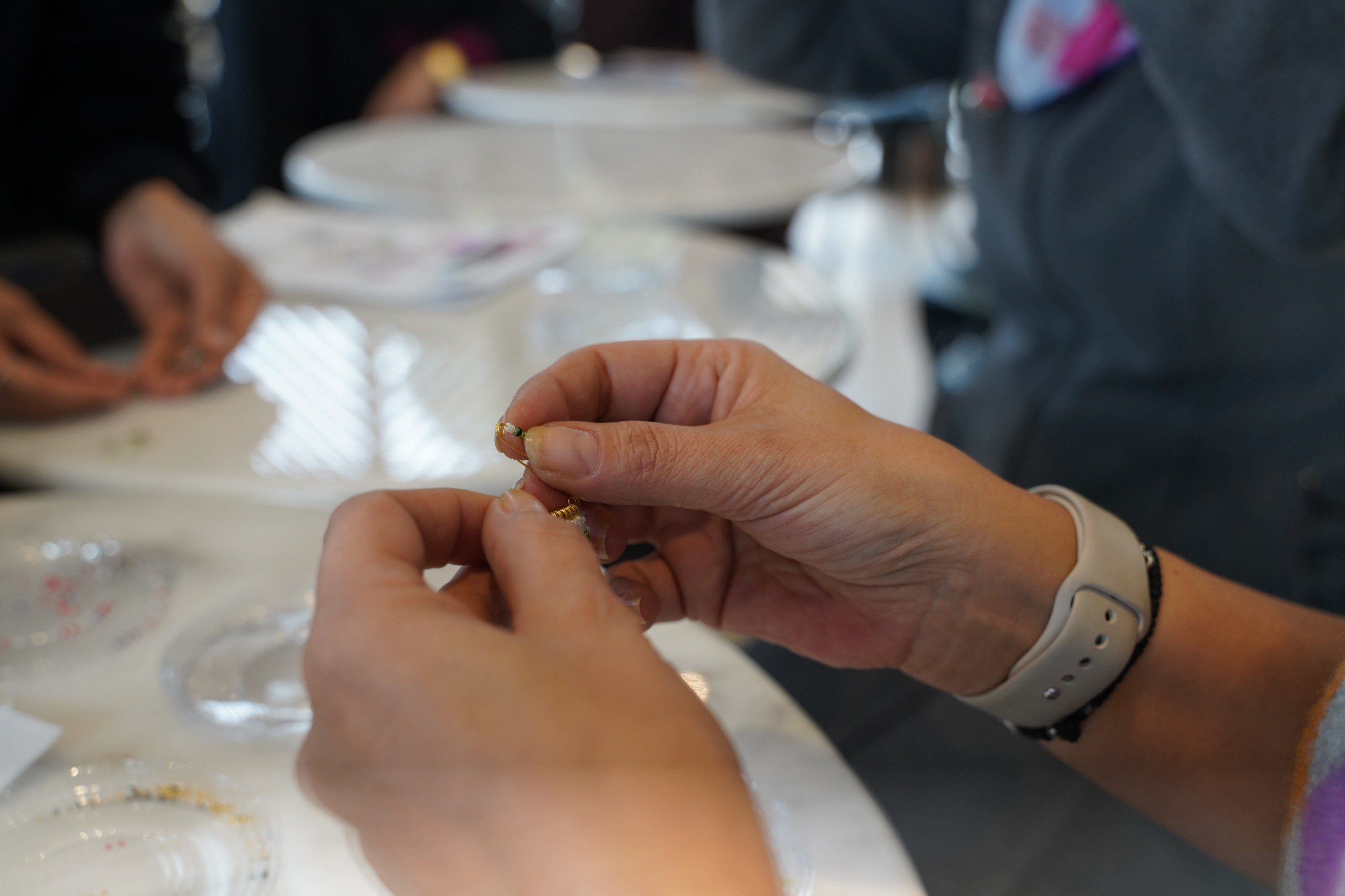Katılımcılar atölye boyunca boncukları dizerek istedikleri desenleri ve figürleri oluşturuyorlar. Bu süreçte sabır ve dikkat gerektiren detaylı bir çalışma yaparak estetik algılarını güçlendirme imkanı buluyorlar. Bu tür çalışmalar el-göz koordinasyonunu geliştirmenin yanı sıra bireylerin yaratıcılıklarını da pekiştiriyor.