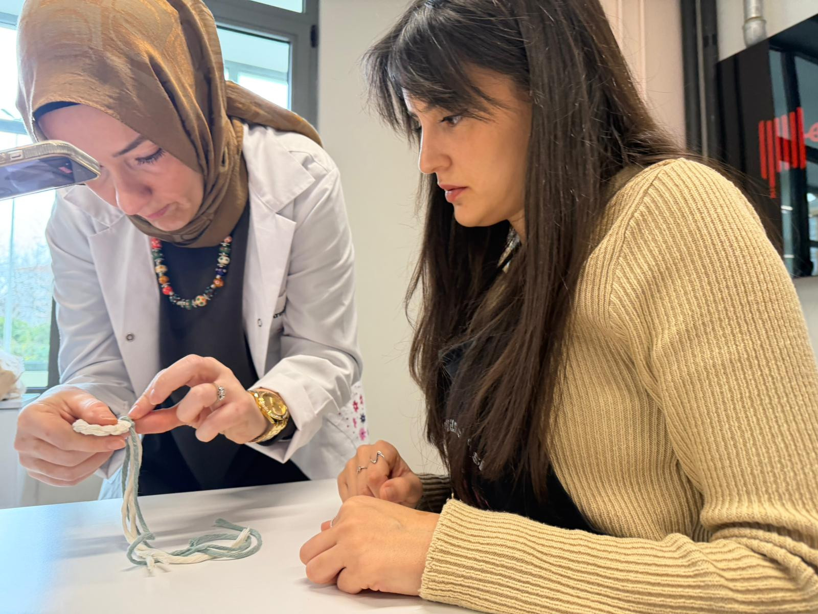 Atölyede iplerin dikkatlice kesilmesi ve düğüm teknikleriyle birleştirilmesi sayesinde sıradan malzemeler sanatsal çalışmalara dönüşüyor. Katılımcılar kendi zevklerine uygun tasarımlar oluştururken her aşamada el becerilerini geliştiriyor. İplerin düğümlenmesi, renklendirilmesi ve ürünlerin tamamlanma süreci katılımcılar için memnuniyet verici oluyor.