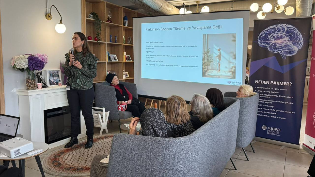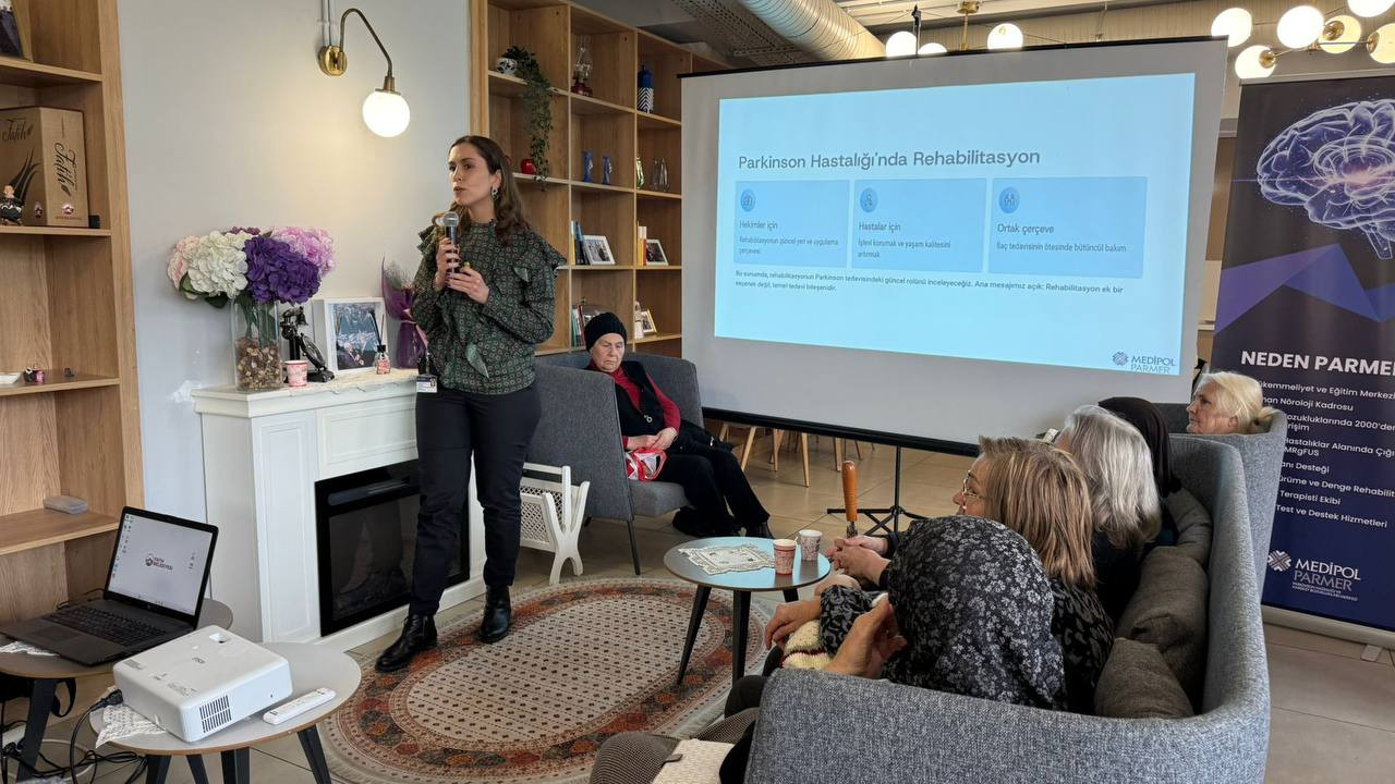 Fizyoterapist Merve Engin ise Parkinson hastalığında fizik tedavi ve rehabilitasyon sürecinin önemini ele aldığı sunumunda, düzenli egzersizin hareket kabiliyetinin korunmasına katkı sunduğunu belirtti. Denge ve koordinasyon çalışmalarının günlük yaşam aktivitelerini kolaylaştırdığını ifade eden Engin, bireye özel planlanan rehabilitasyon uygulamalarının hastaların bağımsız yaşamlarını sürdürmelerine destek verdiğini dile getirdi. Sunumda, evde uygulanabilecek basit egzersiz önerileri ve günlük yaşamı kolaylaştıracak pratik bilgiler de paylaşıldı.