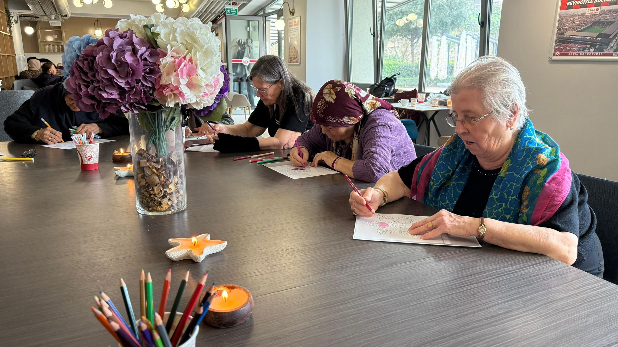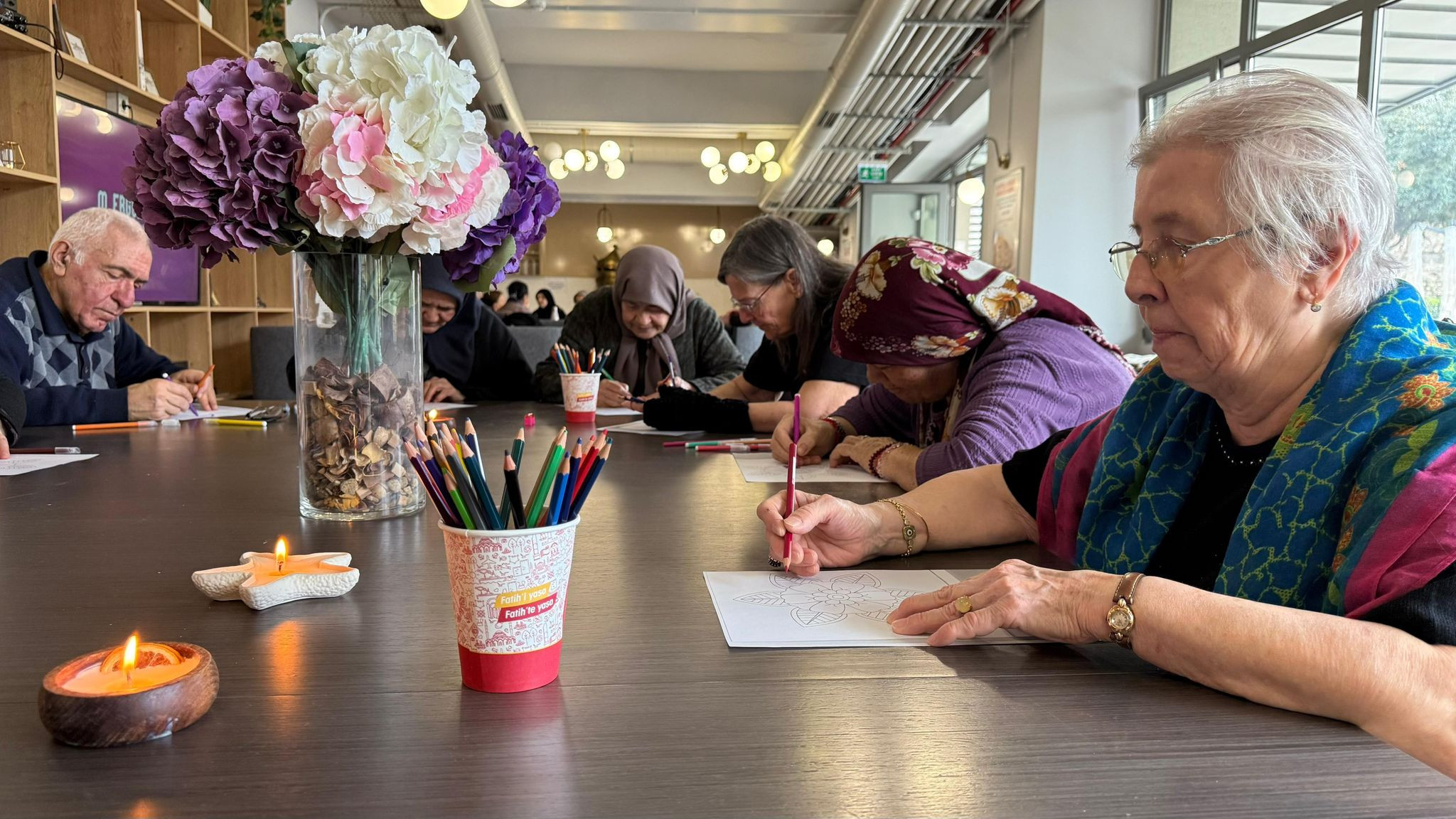 Yadigâr Kahvesi’nin sakin ve samimi ortamında gerçekleştirilen çalışmalar, katılımcıların sosyal etkileşimlerini artırırken, birlikte vakit geçirme kültürünü de güçlendirdi. Büyüklerimiz, etkinlikler aracılığıyla hem zihinsel hem de bedensel olarak sürece dâhil olurken, paylaşım ve iletişimin ön planda olduğu bir buluşma ortamı oluşturuldu.