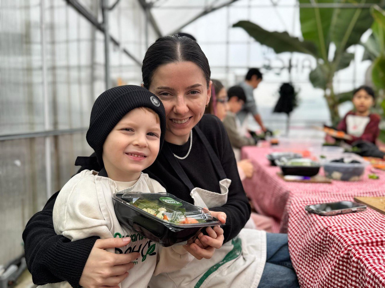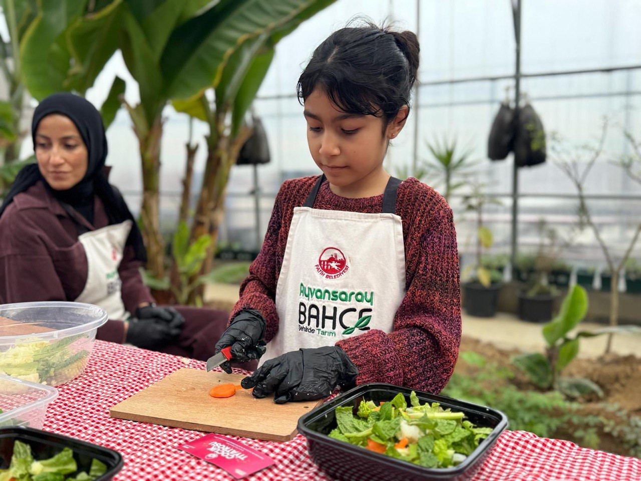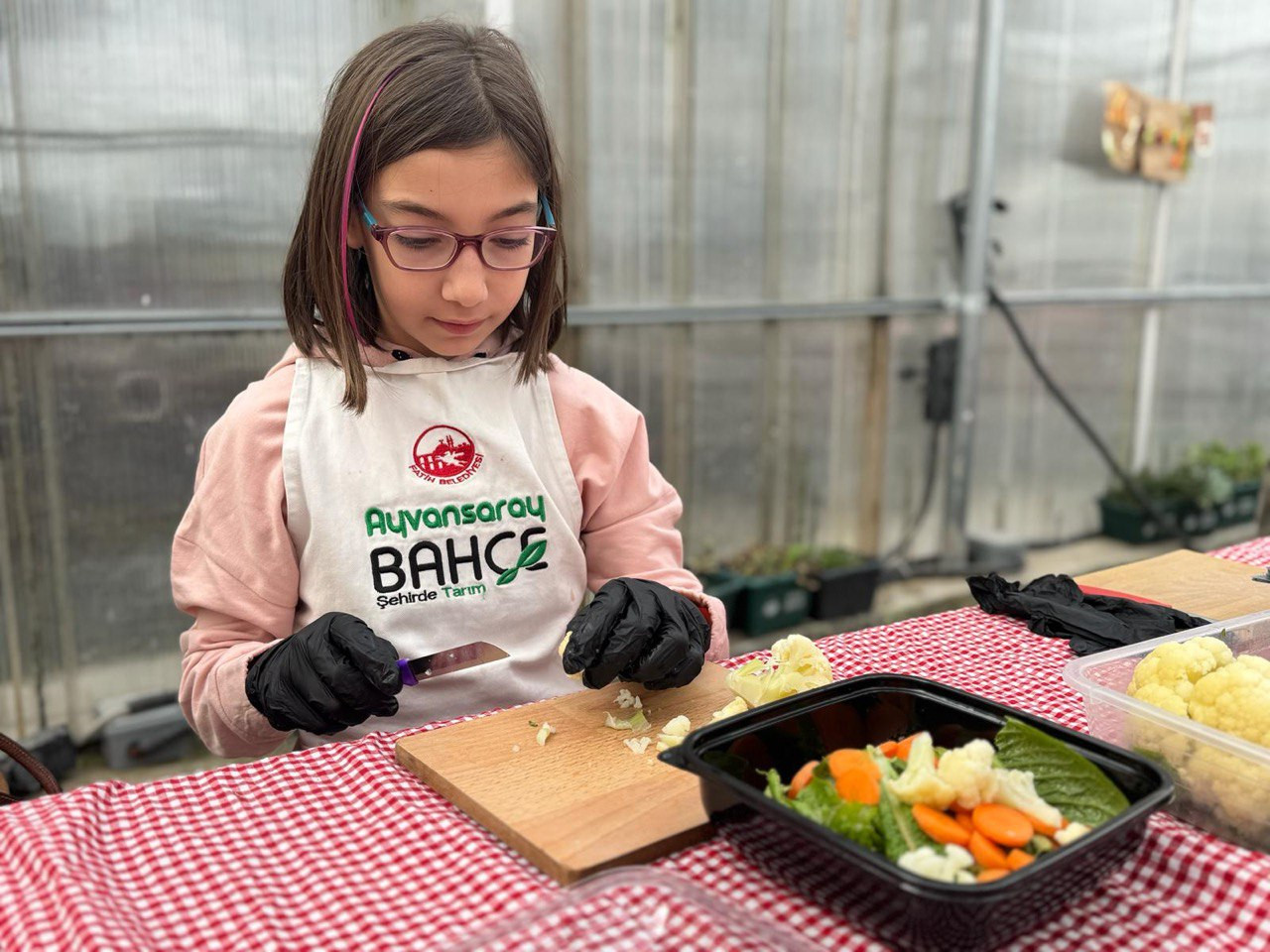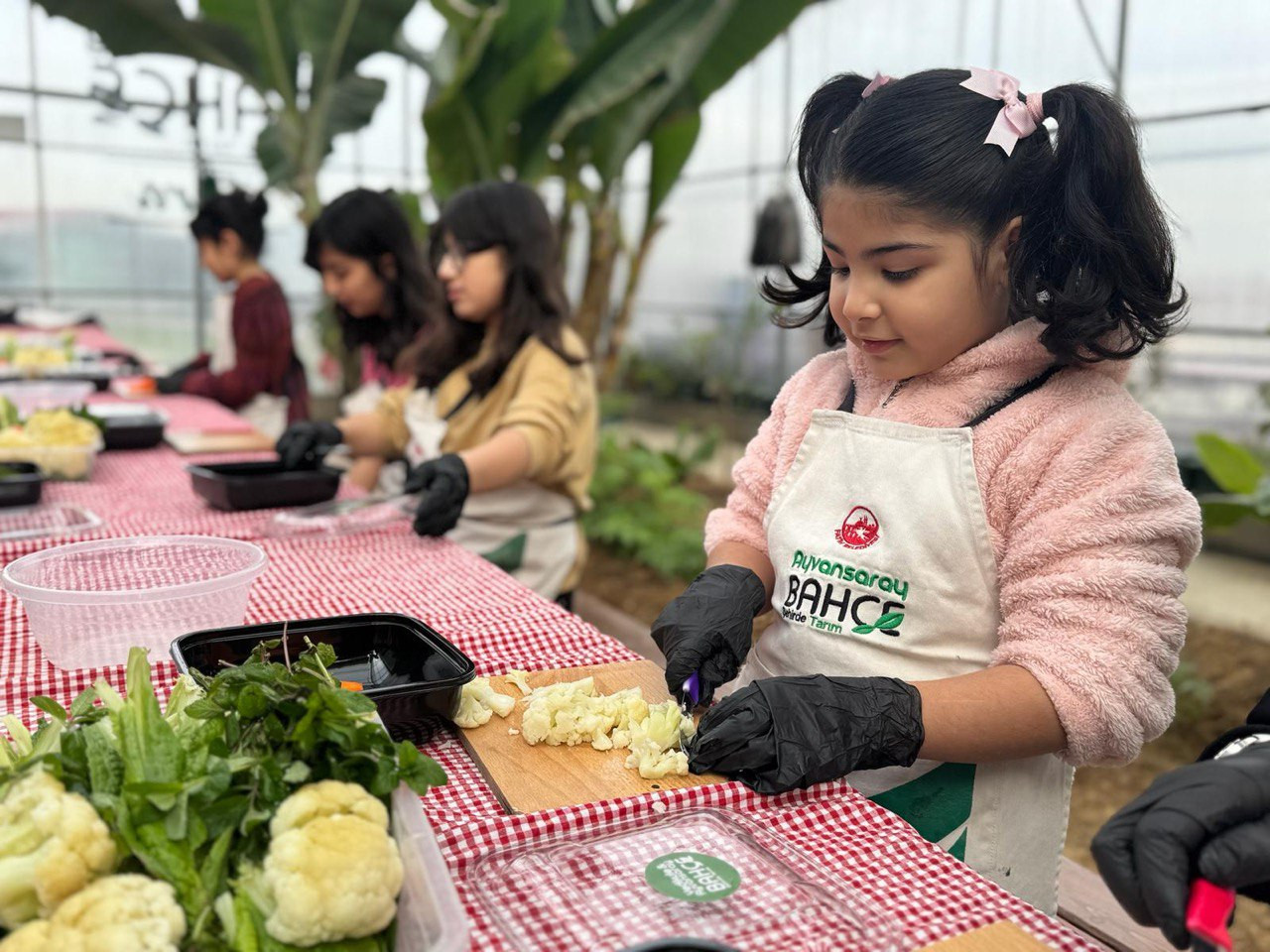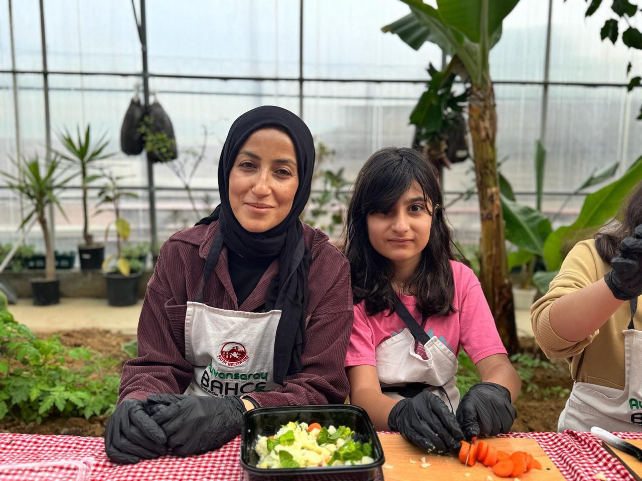 Anneler ve çocuklar Yedikule Bahçe'de taze sebzelerle lezzetli salatalar hazırlayarak hem keyifli vakit geçirdi hem de mutfak becerilerini geliştirdi.