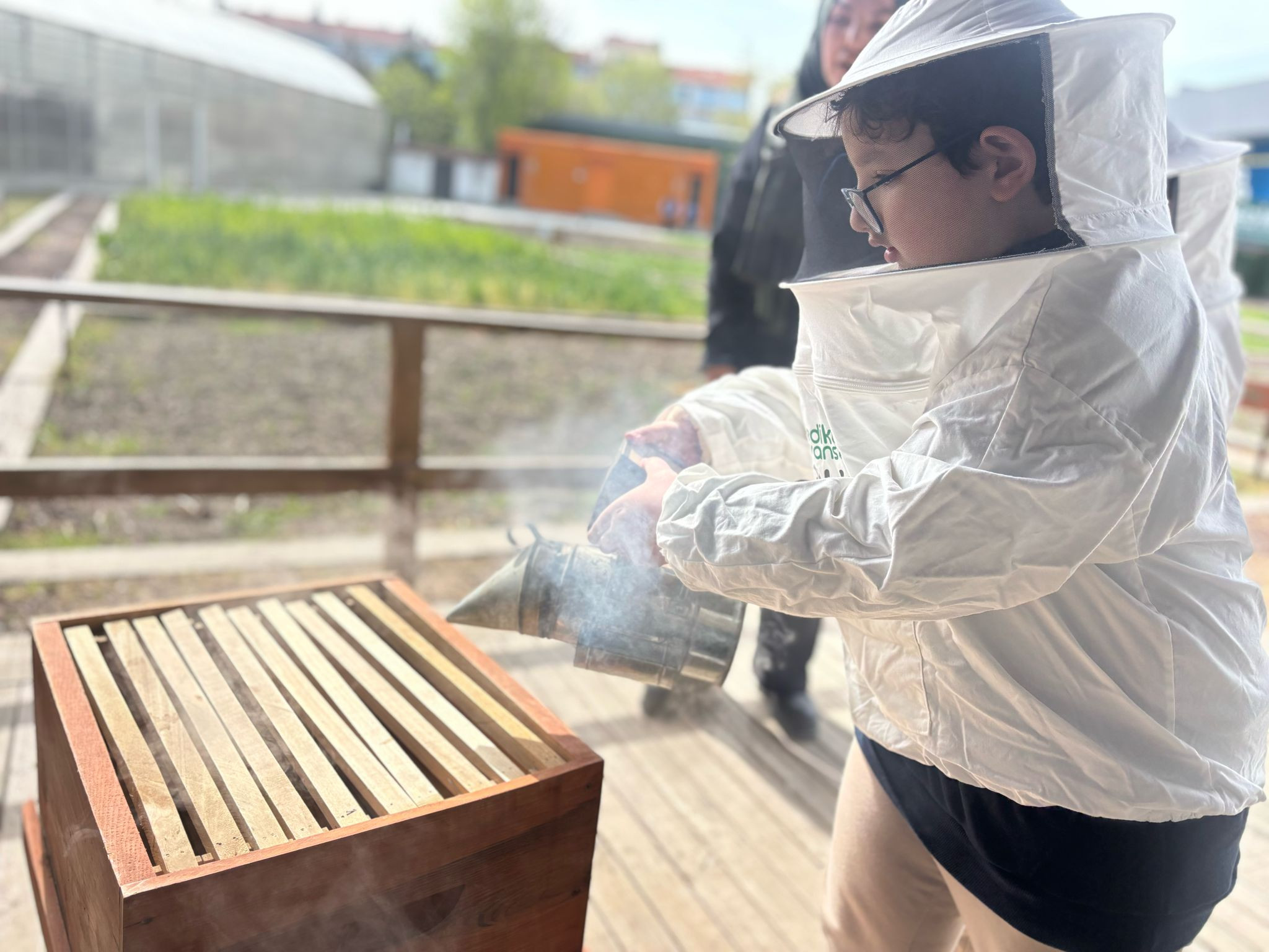 Yedikule Bahçe’de gerçekleşen Arıcılık Atölyesi’nde çocuklarımız arıcılığın inceliklerini öğrendi. Arı kovanlarını yakından inceleyerek bal üretim sürecini gözlemledi ve arıların ekosistemdeki önemini keşfetti.