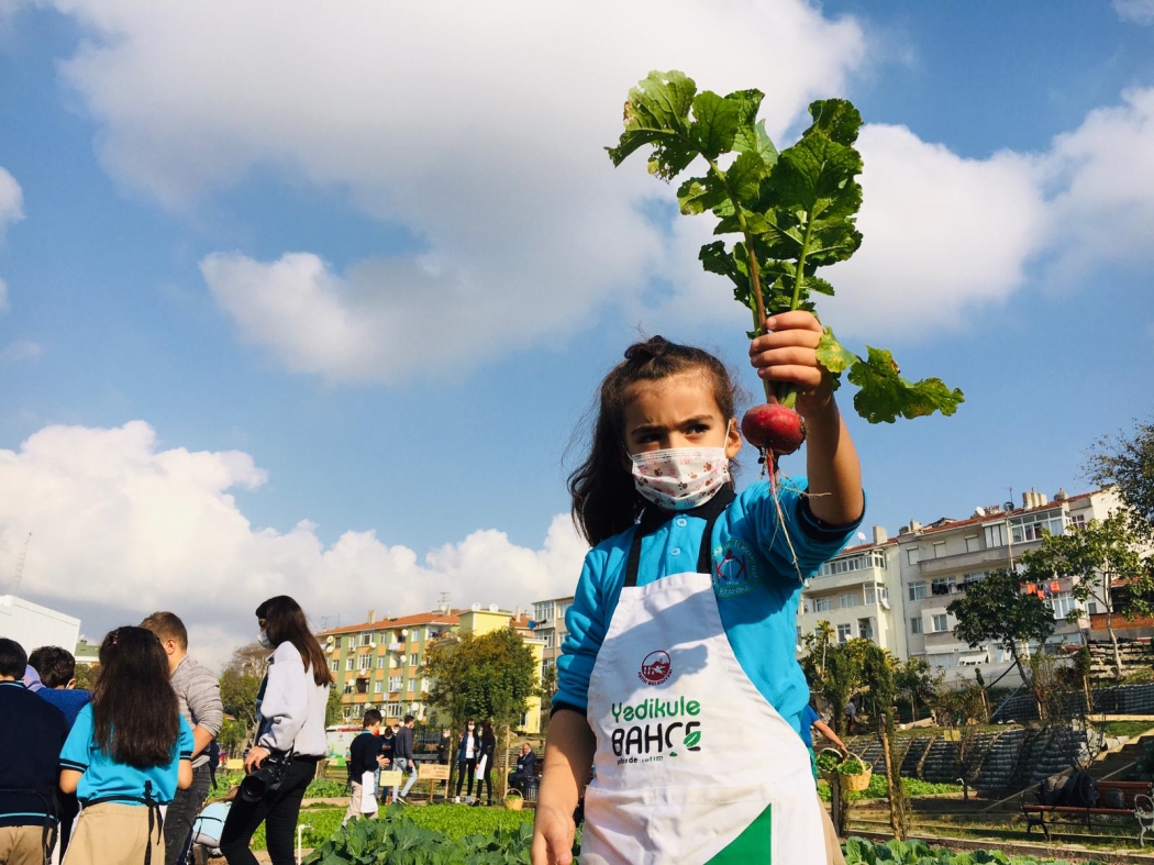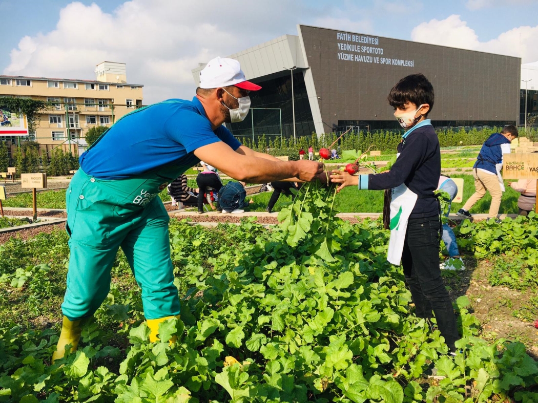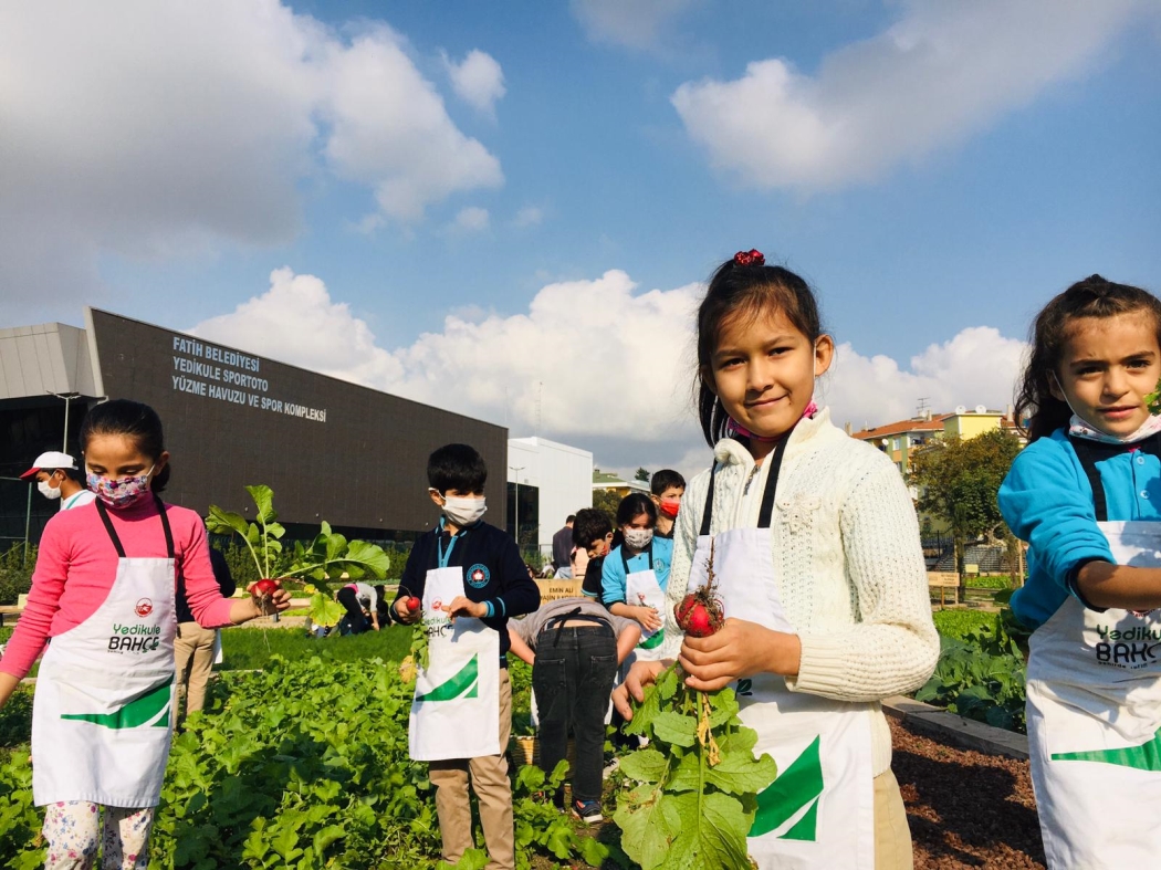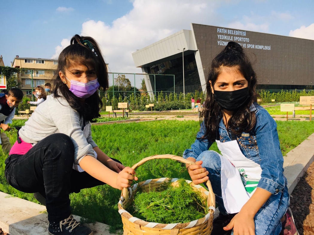Fatih Belediyesi’nin çocuklarda çevre bilincini geliştirirken toprağa dokunmalarını ve bitki yetiştirmeyi öğrenmelerini sağladığı Yedikule Bahçe’de, ilk hasat gerçekleşti.