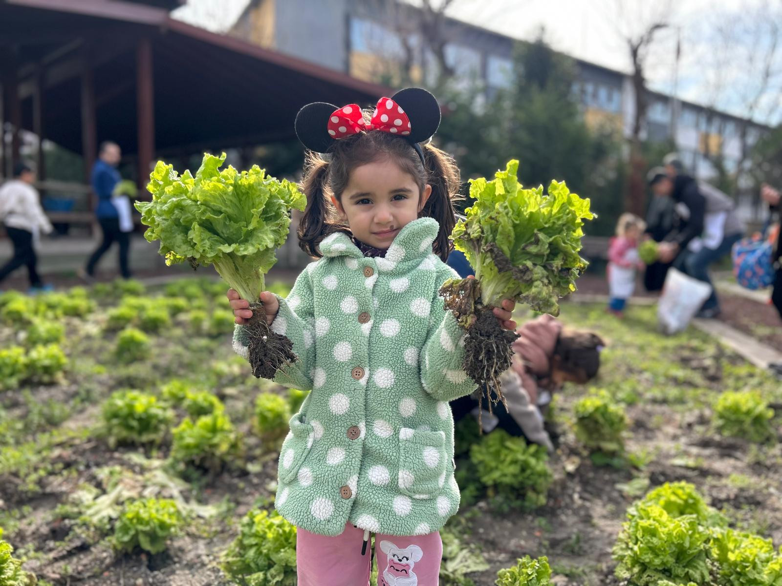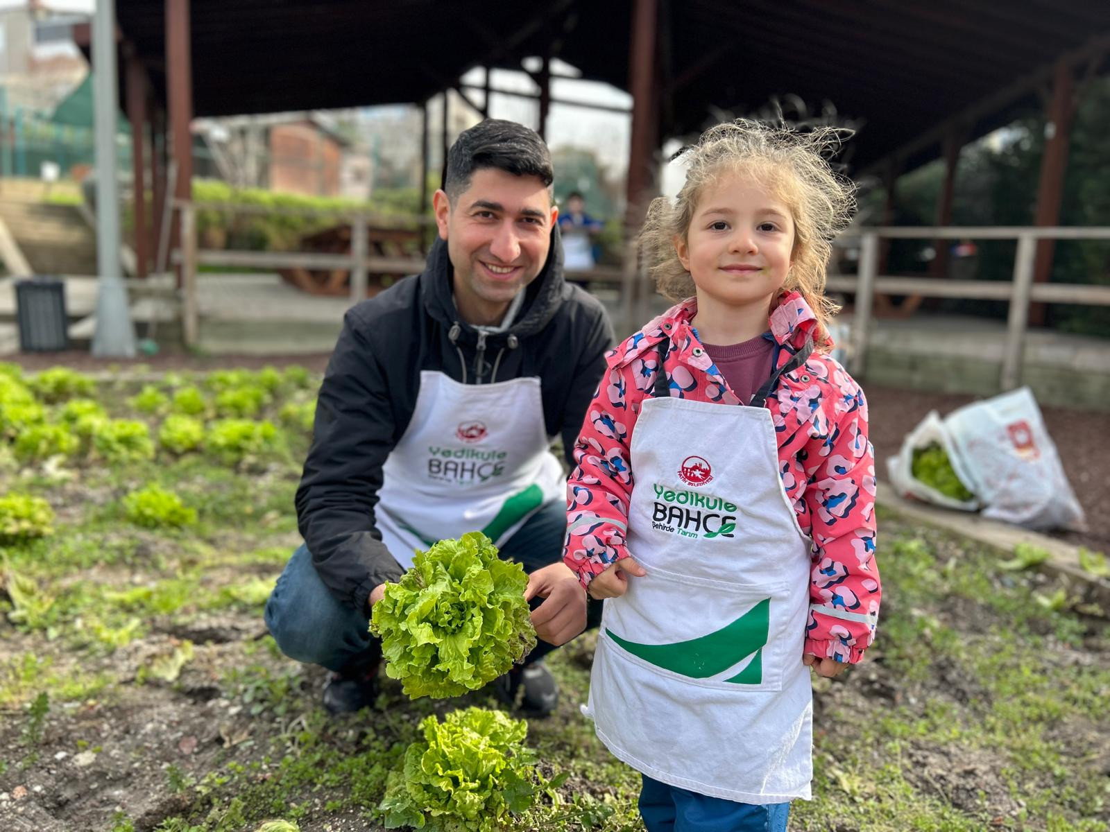 Yedikule Bahçe’de gerçekleşen Kış Hasadı etkinliği, aynı zamanda ailelerin birlikte üretime katıldığı, ortak sorumluluk üstlendiği ve doğayla doğrudan temas kurduğu verimli bir buluşma ortamı oluşturdu. Babalar ve çocuklarımızın yan yana gerçekleştirdiği hasat çalışmaları, kuşaklar arası etkileşimi güçlendirirken, üretimin birleştirici yönünü de ortaya koydu. Toprakla kurulan bu bağ, çocuklarımızın doğaya karşı daha bilinçli ve duyarlı bireyler olarak yetişmesine katkı sunan önemli bir kazanım olarak öne çıktı.
