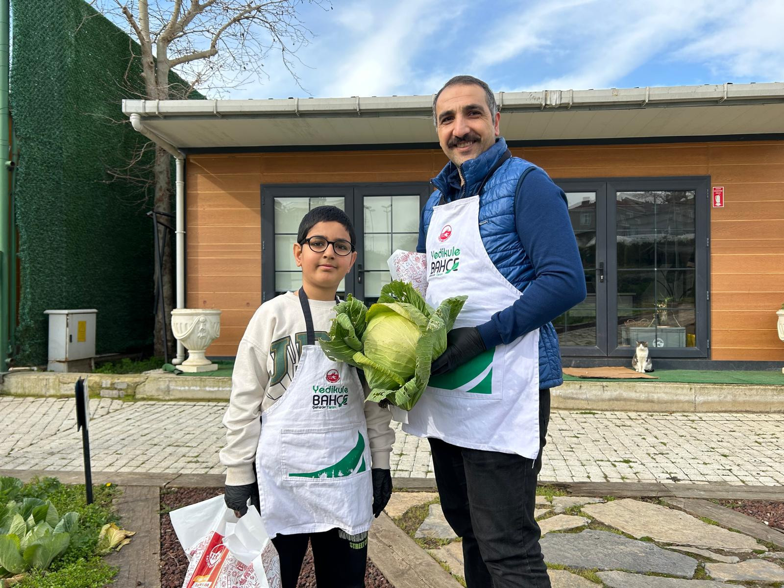 Etkinlik boyunca babalar ve çocuklarımız, Yedikule Bahçe’nin üretim alanlarında birlikte çalışarak toprağın bereketini paylaşmanın memnuniyetini yaşadı. Hasat edilen ürünlerin yetişme süreci hakkında yapılan bilgilendirmeler sayesinde çocuklarımız, üretimin yalnızca sonuç odaklı bir faaliyet olmadığını; planlama, bakım, sabır ve süreklilik gerektiren uzun soluklu bir süreç olduğunu yerinde öğrendi. Bu süreç, çocuklarımızın doğaya yönelik farkındalığını artırırken, üretimin değerini kavramalarına da katkı sundu.
