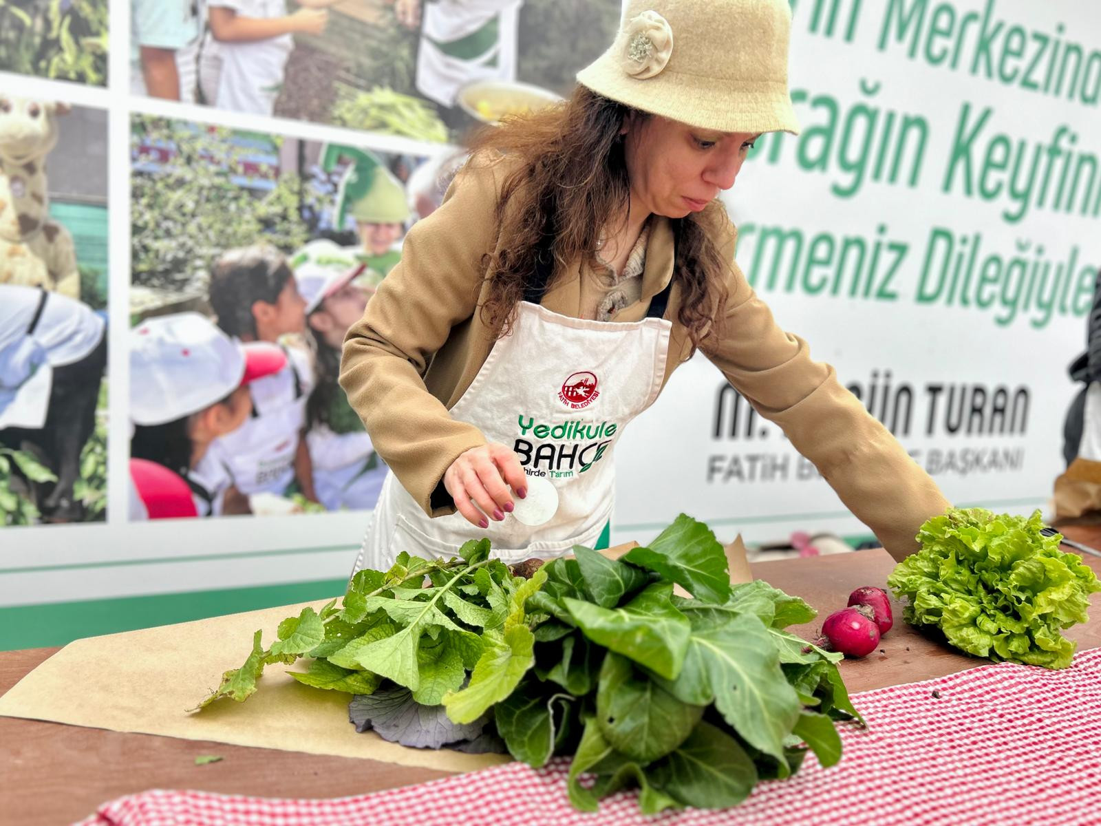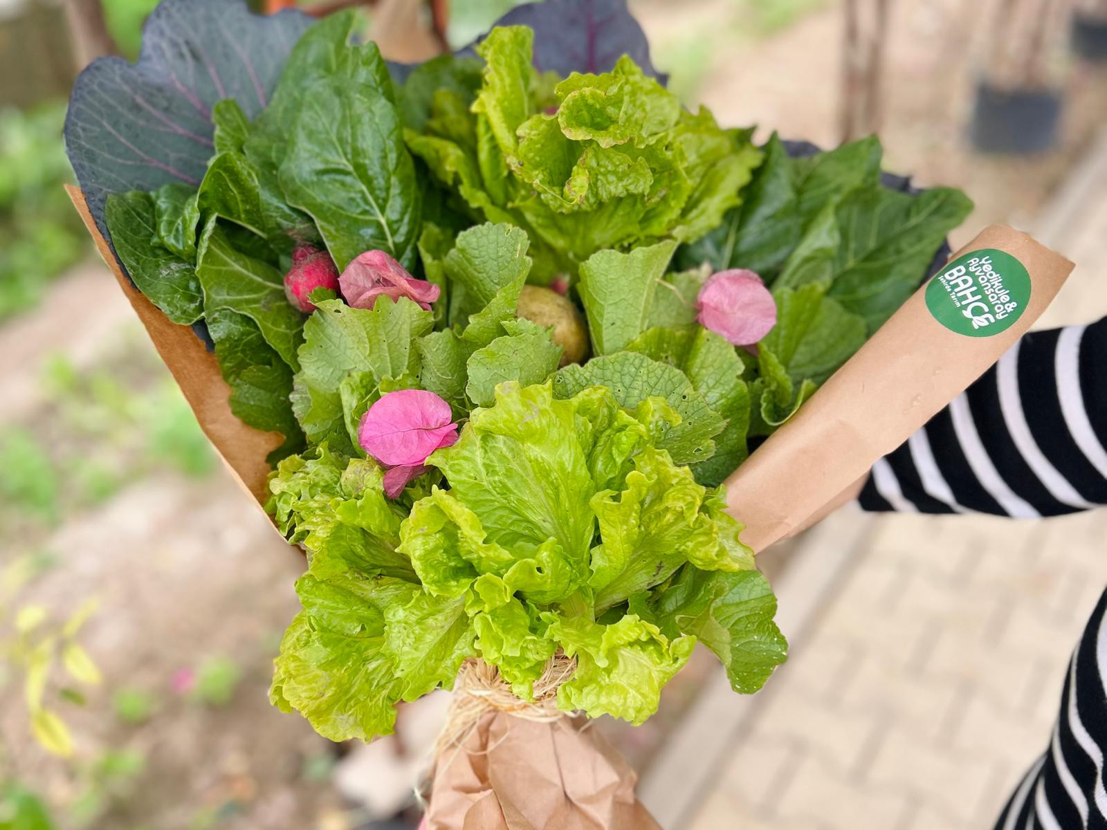 Yedikule Bahçe’de gerçekleştirilen sebze buketi etkinliğinde, bahçeden toplanan mahsuller sağlıklı beslenmenin önemini ve doğal güzelliği bir arada yansıtan estetik buketlere dönüştürüldü.