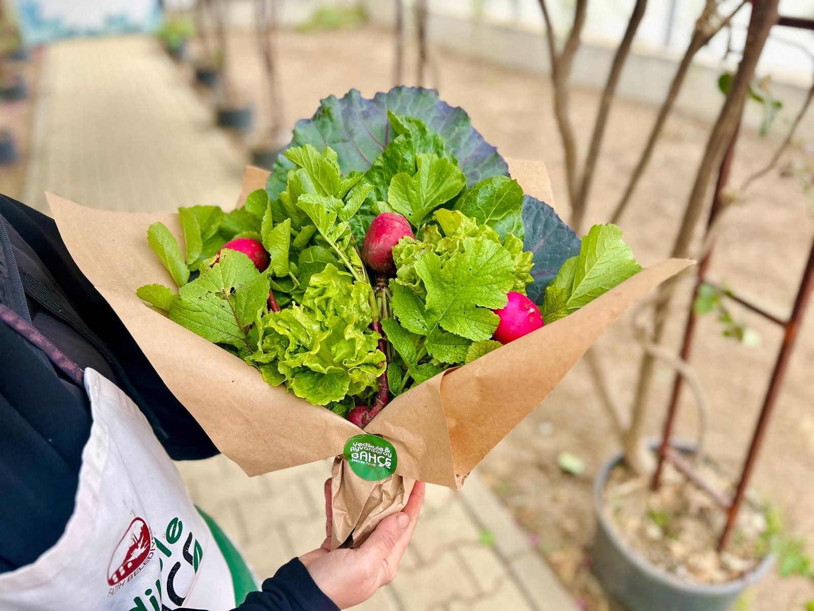 Fatih Belediyesi’nin üretim ve paylaşımı merkeze alan projelerinden Yedikule Bahçe, bu kez “sebze buketi” etkinliğiyle dikkat çekti. Bahçede yetişen domates, biber, patlıcan, salatalık ve yeşillikler özenle bir araya getirilerek farklı buketler hazırlandı. Ortaya çıkan ürünler yalnızca sofralara taze sebze taşımakla kalmadı; aynı zamanda görsel olarak da estetik bir bütünlük sundu.