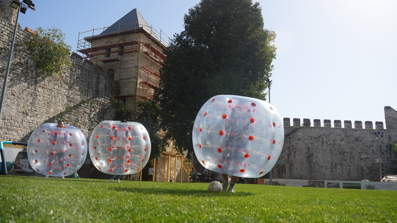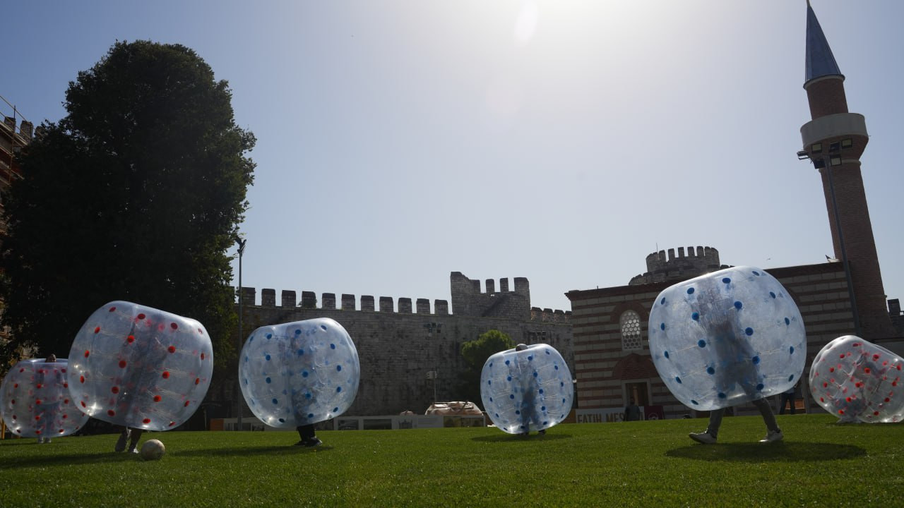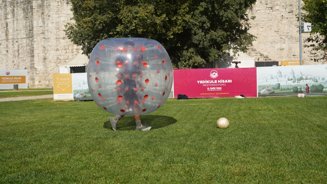 FitFatih'in düzenlediği balon futbolu etkinliği İstanbul'un tarihî simgelerinden Yedikule Hisarı'nda katılımcılara keyifli anlar yaşattı.