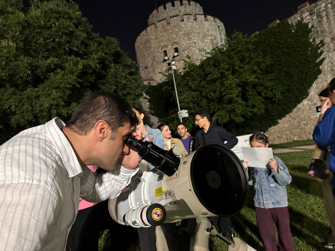 Yedikule Hisarı'nın tarihî atmosferi Ay gözlemi etkinliğine farklı bir boyut kazandırdı. Hisarın surları arasında gökyüzüne teleskoplarla bakmak katılımcılara geçmişin ve evrenin derinliklerinde bir yolculuk yapma hissi verdi. Tarih boyunca birçok medeniyetin Ay'a atfettiği anlamlar mitolojiden bilimsel gerçeklere uzanan bir yolculukla ele alındı. Katılımcılar Ay’ın tarihî dönemlerdeki sembolik ve kültürel önemini, mitolojik efsanelerini ve astronomi biliminin gelişimindeki rolünü öğrenerek Ay'a dair farklı bakış açıları kazandı.