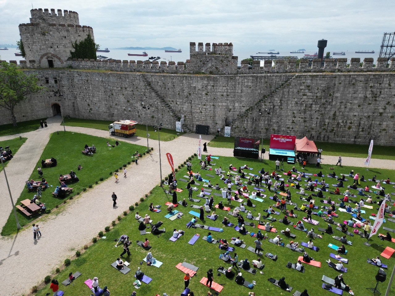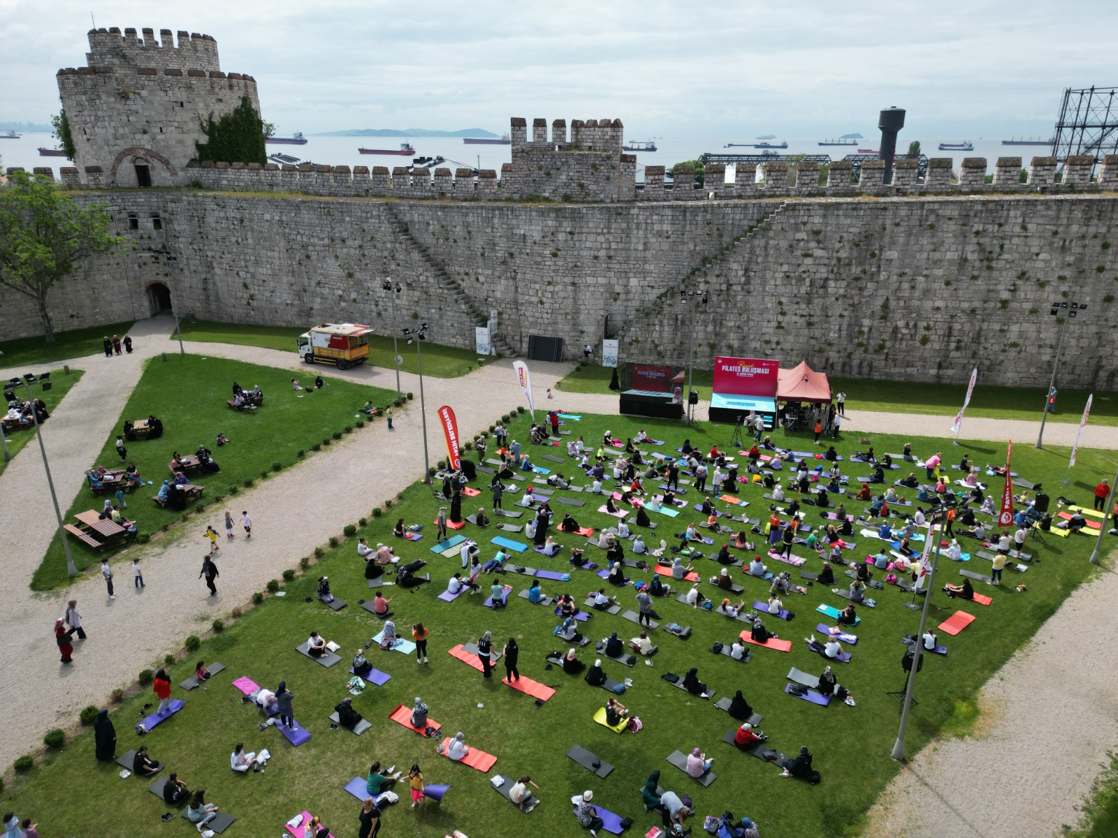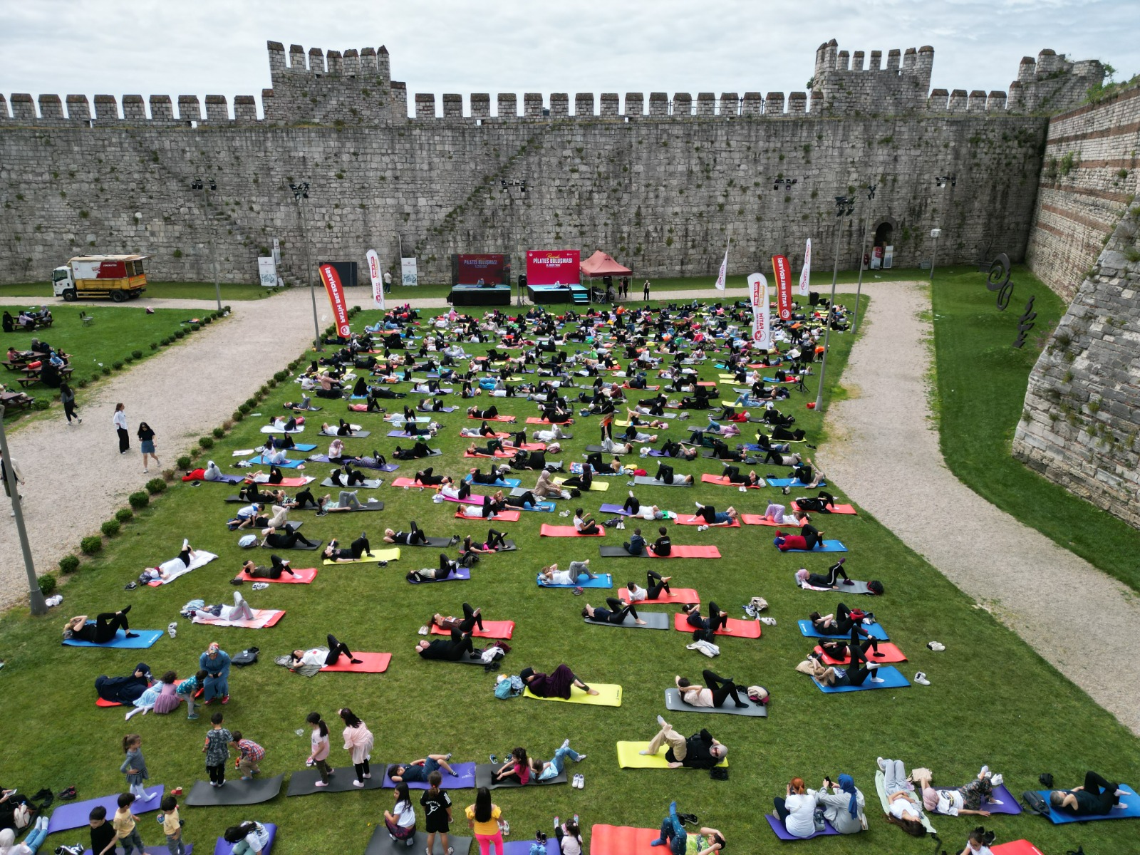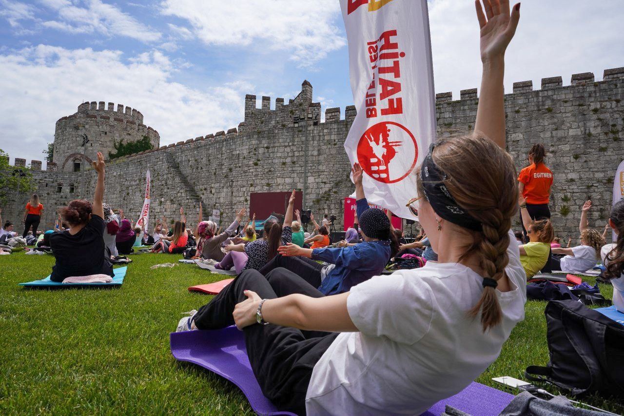 Fatih Belediyesi'nin düzenlediği Büyük Pilates Buluşması etkinliği Yedikule Hisarı’nda yapıldı. Etkinlikte, Diyetisyenler tarafından hazırlanan özel menü ile sağlıklı atıştırmalıklar sunuldu ve limonata ikram edildi.