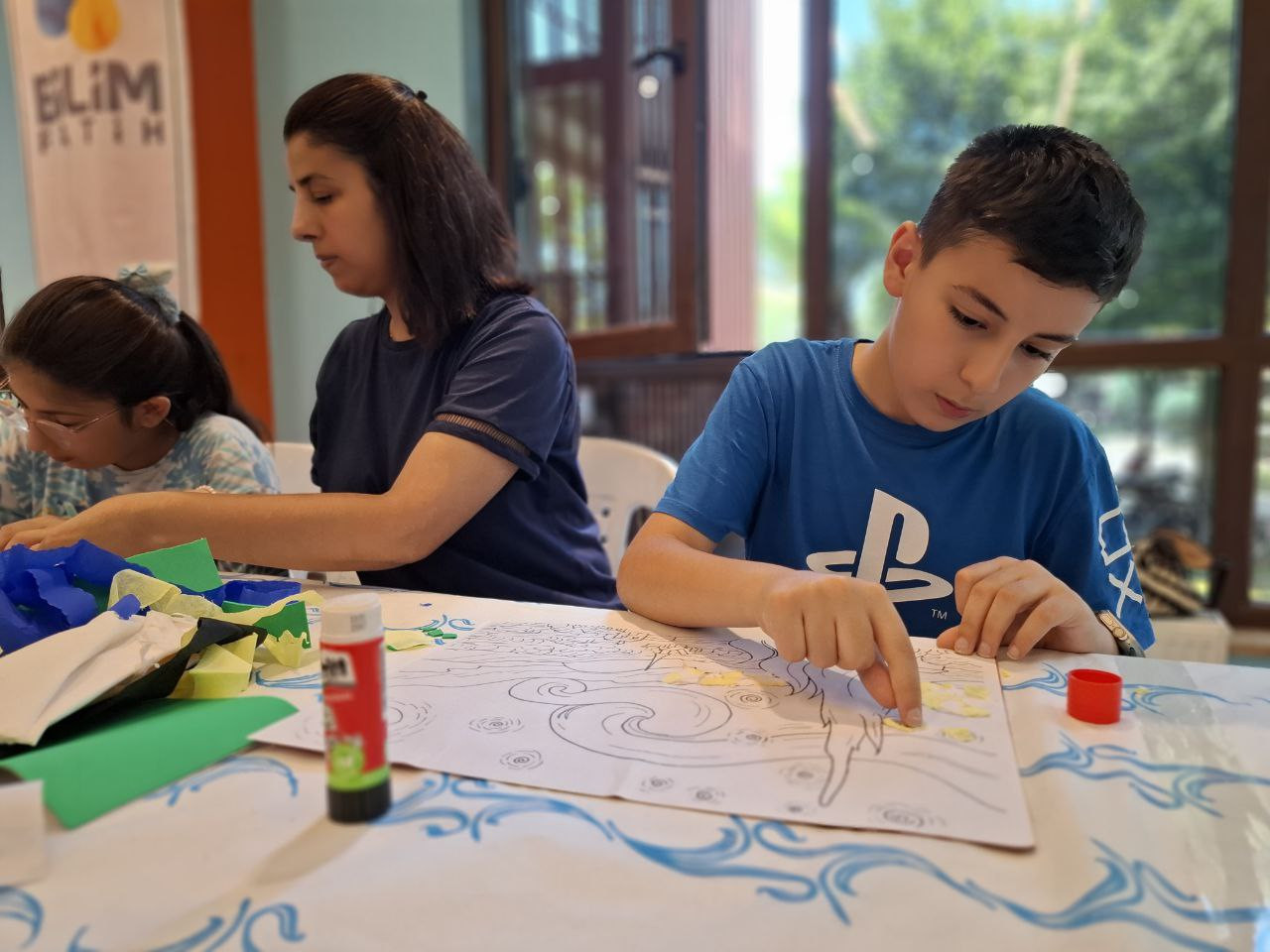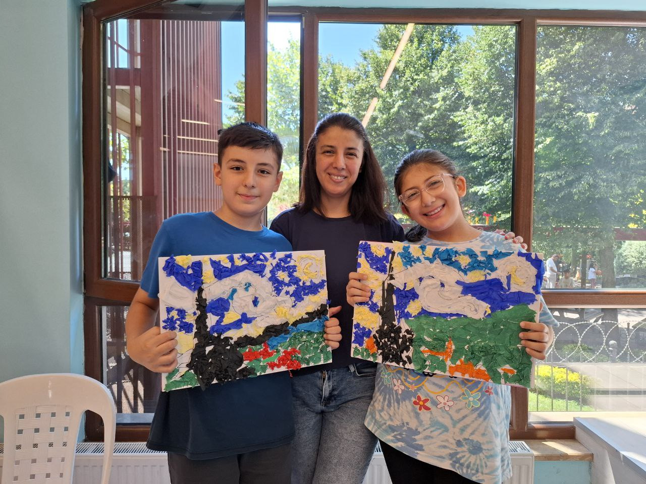 Atölye boyunca çocukların hayal gücüyle Van Gogh’un duygu dolu fırça darbeleri arasında bir köprü kuruldu. Renklerin psikolojisi, biçimlerin dili ve parçaların bir araya gelişindeki anlam çocuklara sade ama etkili bir şekilde aktarıldı. Uygulamalı eğitim süreci sayesinde çocuklar görsel düşünme becerilerini geliştirmenin yanı sıra sabır, dikkat ve estetik bakış gibi kazanımlar da elde etti.