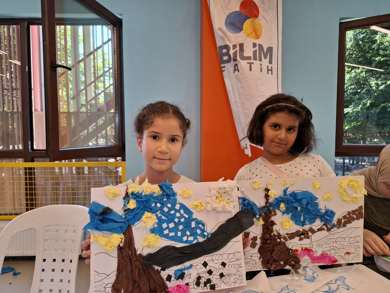 Fatih Belediyesi’nin Bilim Fatih programı kapsamında düzenlenen “Parçadan Bütüne: Kolaj Sanatı” etkinliğinde çocuklarımız, Vincent van Gogh’un “Yıldızlı Gece” tablosundan ilhamla kendi sanat eserlerini üretirken; veliler de bu sürece eşlik etti.
